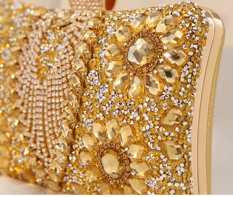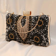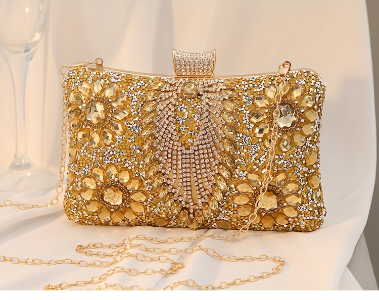 Vintage Glamour Ladies' Cocktail Clutch Bag - Sparkling Rhinestones, PU Leather, Optional Chain Shoulder Strap, Stylish Party Prom Handbag with Classic Design and Timeless Elegance