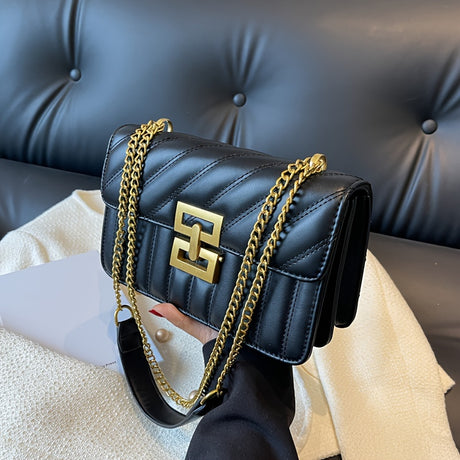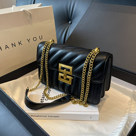Luxury Quilted Crossbody Bag for Women - Stylish Chain Shoulder Bag with Solid Color Square Purse