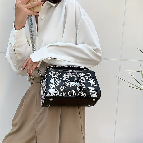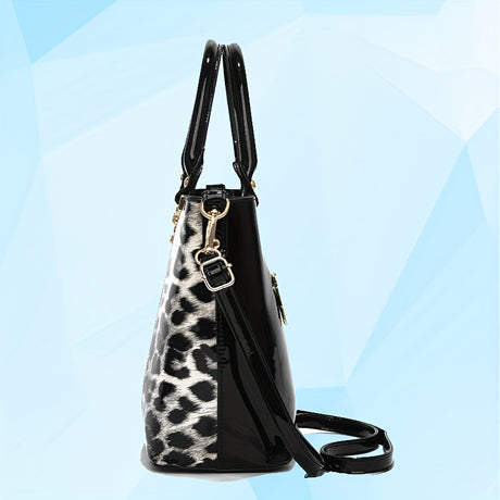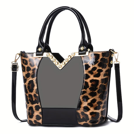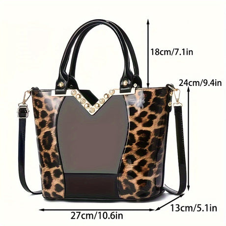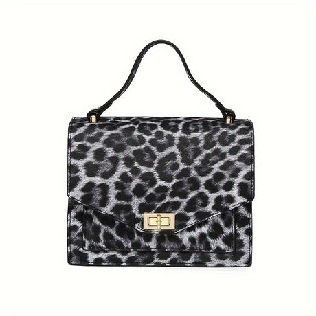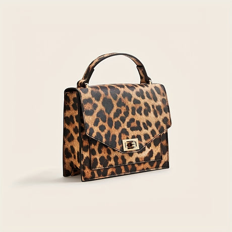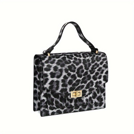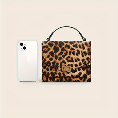 Leopard Print Handbag, Vintage Square Clutch Purse, Women's PU Leather Satchel Bag For Prom