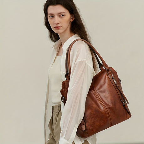 Versatile Solid Color PU Leather Underarm Bag, Stylish Zipper Shoulder Handbag for Everyday Use