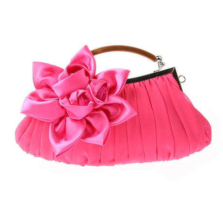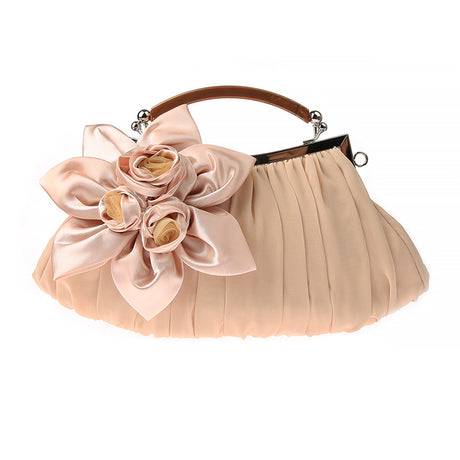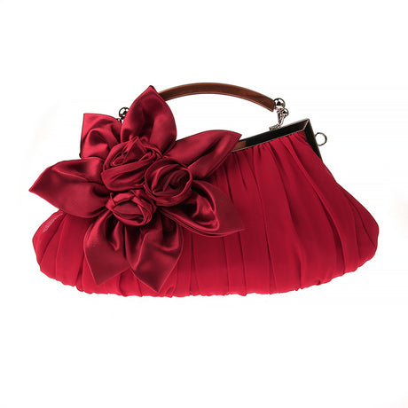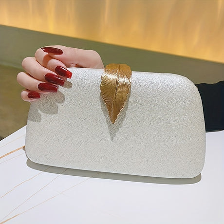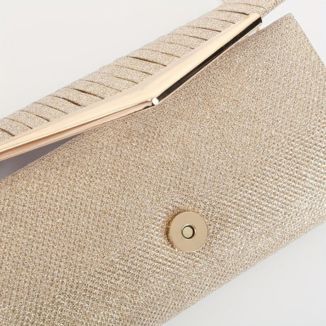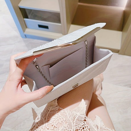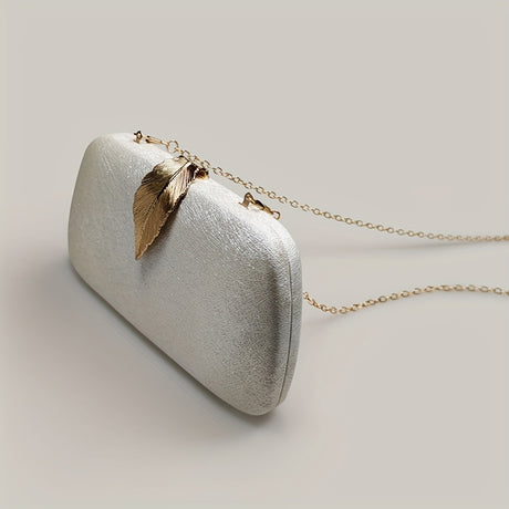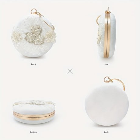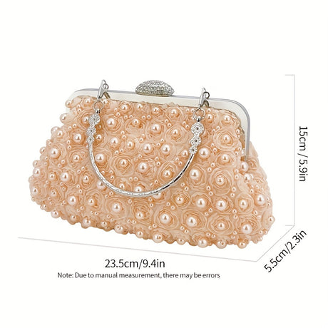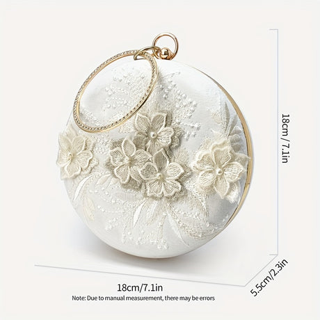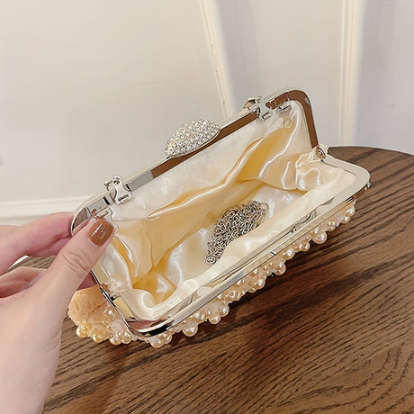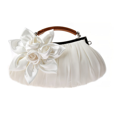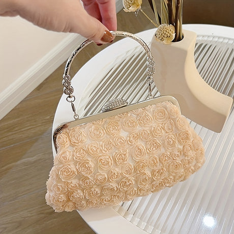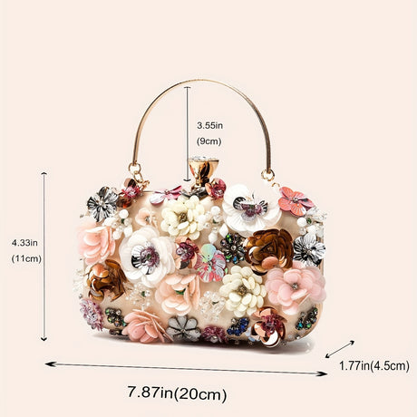 Shiny Event Clutch Bag, Buckle Metal Chain Handbag, Floral Handle Party Bag For Wedding