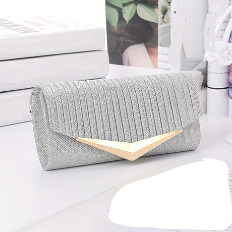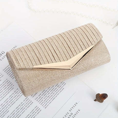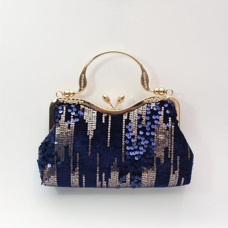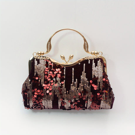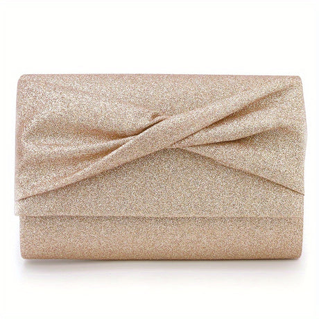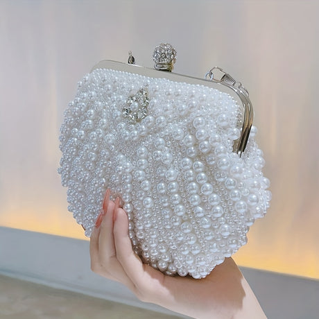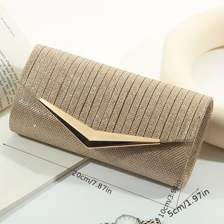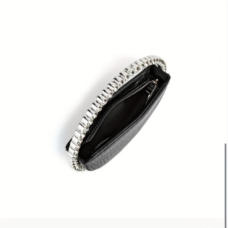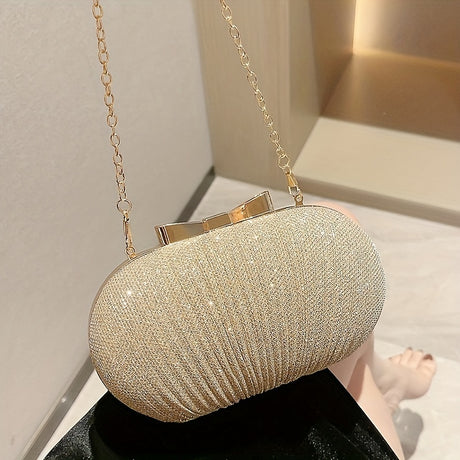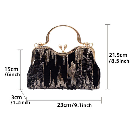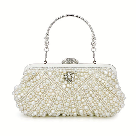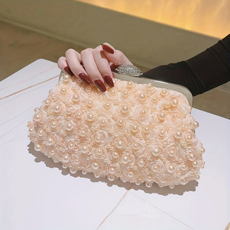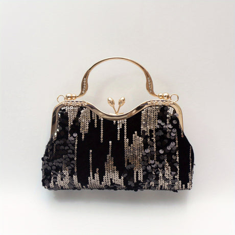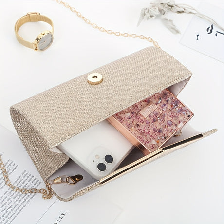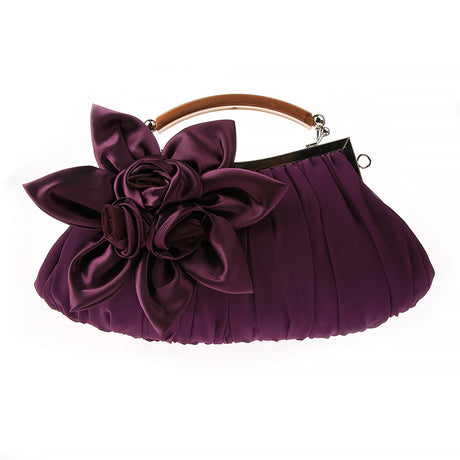 Shiny Event Clutch Bag, Buckle Metal Chain Handbag, Floral Handle Party Bag For Wedding