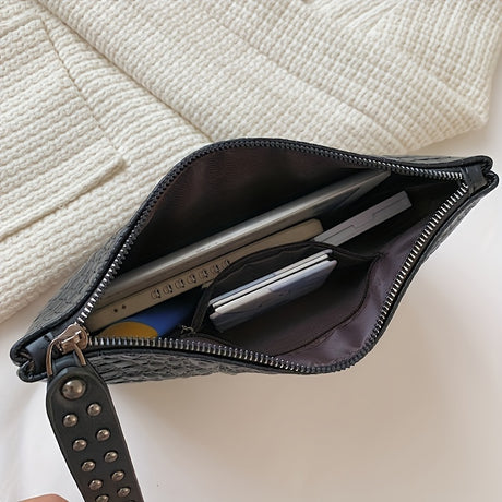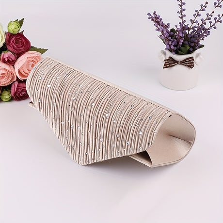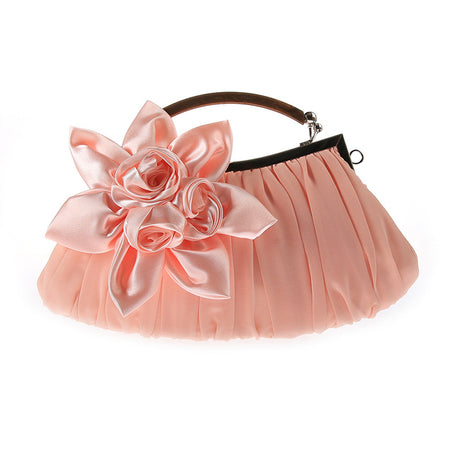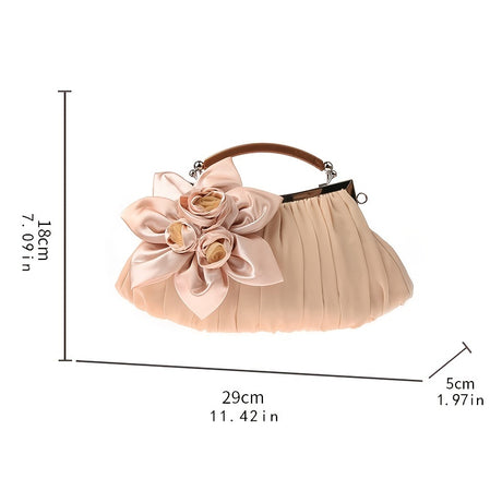 Floral Decor Clutch Bag, Elegant Ruched Detail Handbag, Women's Trendy Chain Shoulder Bag For Party