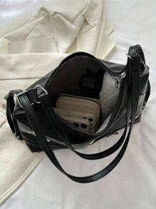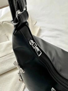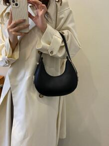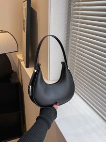 Casual Minimalist Solid Color Crossbody Bag, Zipper Crescent Shoulder Bag For Women, Daily Use Bag