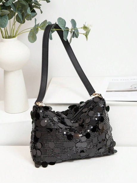 1pc Women's New Arrival Sequin Crescent Shaped PVC Shoulder Bag