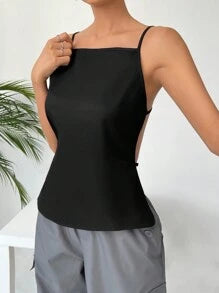 EZwear Casual Knit Solid Color Regular Fit Backless Sleeveless Tank Top For Women