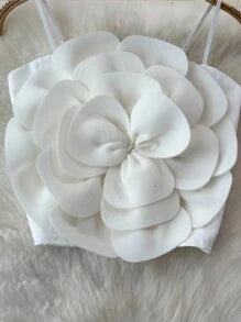 INAWLY Women's Solid Color 3D Floral Decor Camisole Top
