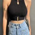 Women Stylish Crop Tops, Y2K Sleeveless Patchwork Casual Spring Fall Summer Street Party Tops - Black / One-size is backordered and will ship as soon as it is back in stock.