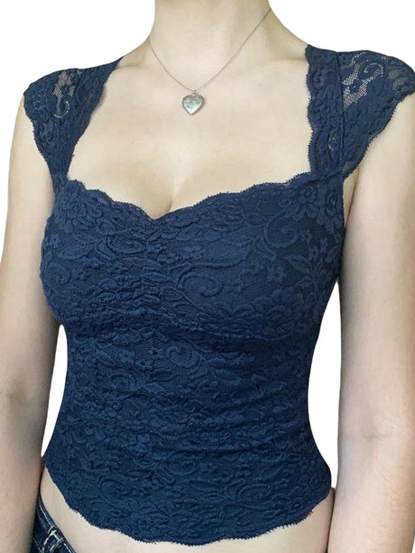Fairycore Lace Floral Crop Tops Y2k Slim Fit Fly Sleeve T Shirts Summer Cute Shirts Streetwear