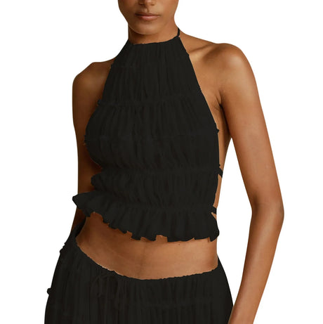 Sleeveless Collar Crop Top Women Tank Tops Casual Y2K Summer 2024 Black T Shirts Sexy