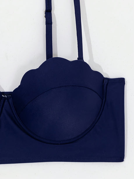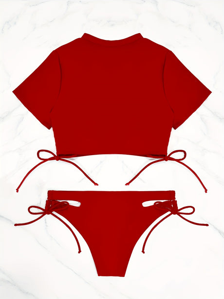 Red Pearl Hollow Deep V Sexy Bikini Backless Beach Vacation Swimsuit For Women