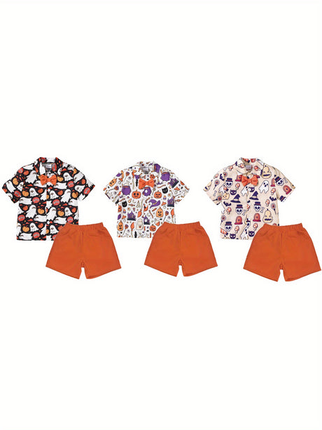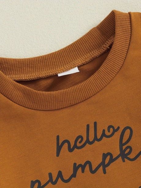 Toddler Boys Halloween Sets Long Sleeve Letter Pumpkin Print Tops Plaid Pants Sets