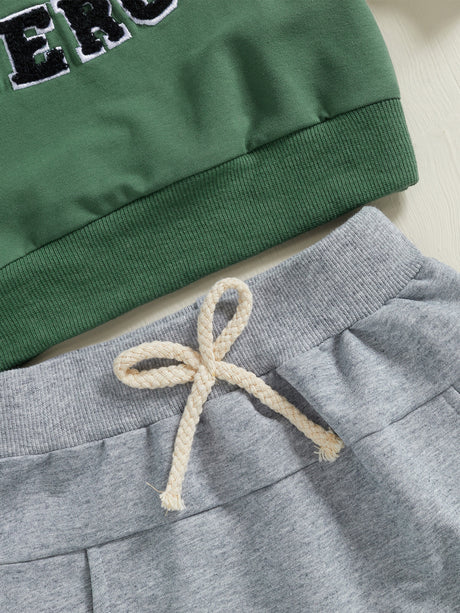 Toddler Boys Fall Outfits Letter Embroidery Long Sleeve Sweatshirts and Long Pants 2pcs Clothes Set