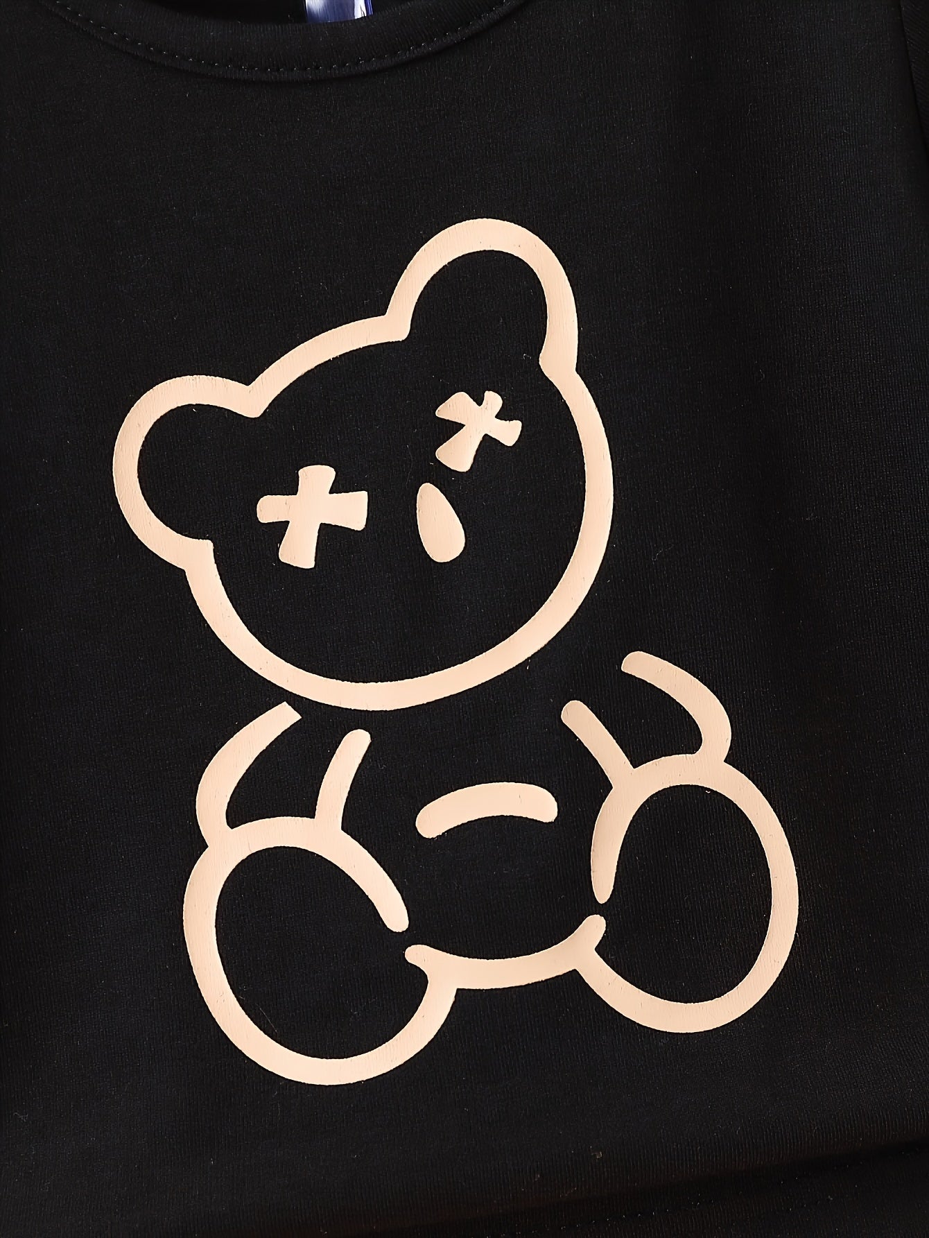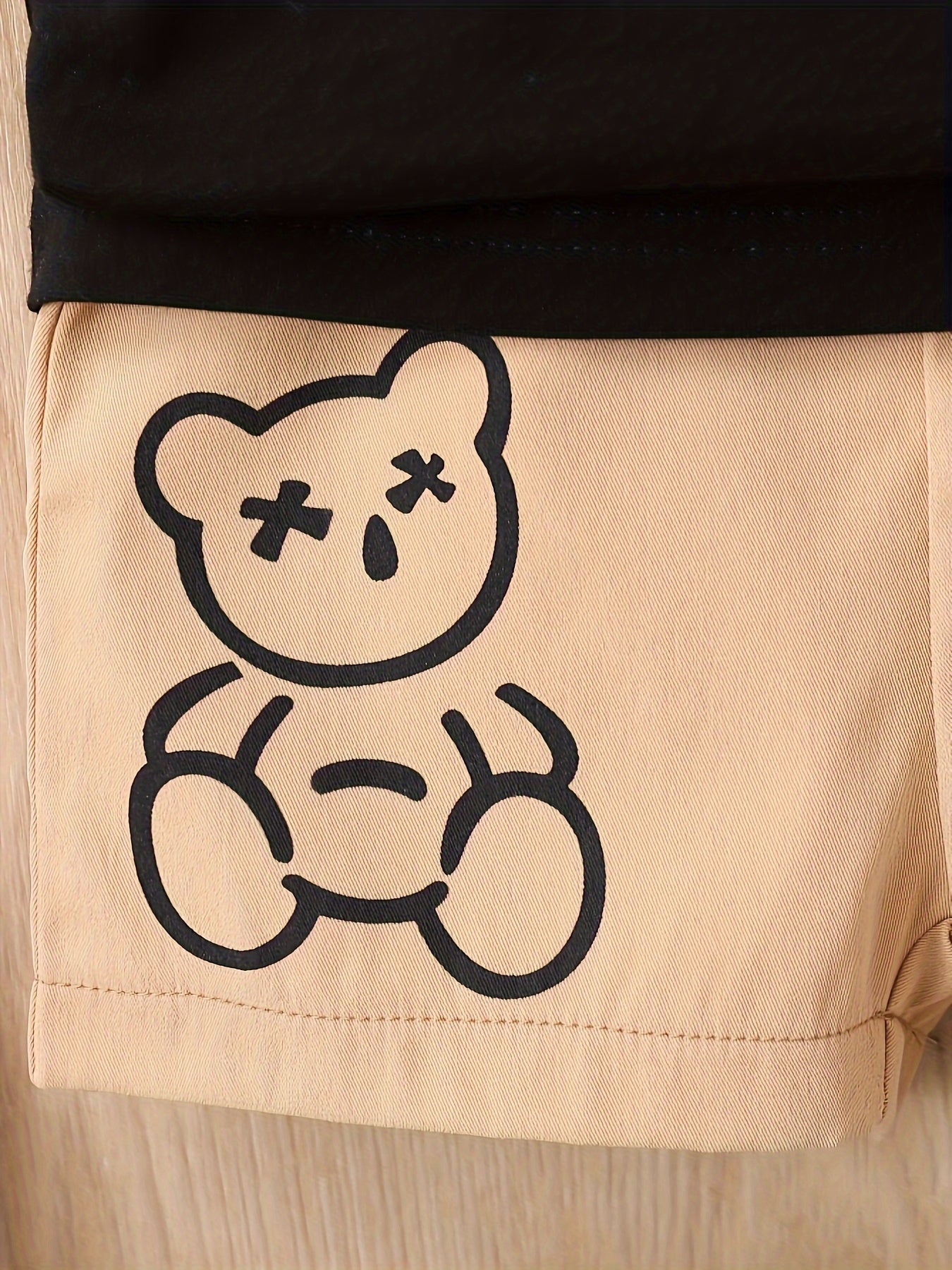 Toddler Boys 2-Piece Set, Cute Bear Pattern, Casual Short Sleeve T-Shirt & Shorts, Comfortable Summer Outfit for Kids - Black / 6-9M is backordered and will ship as soon as it is back in stock.