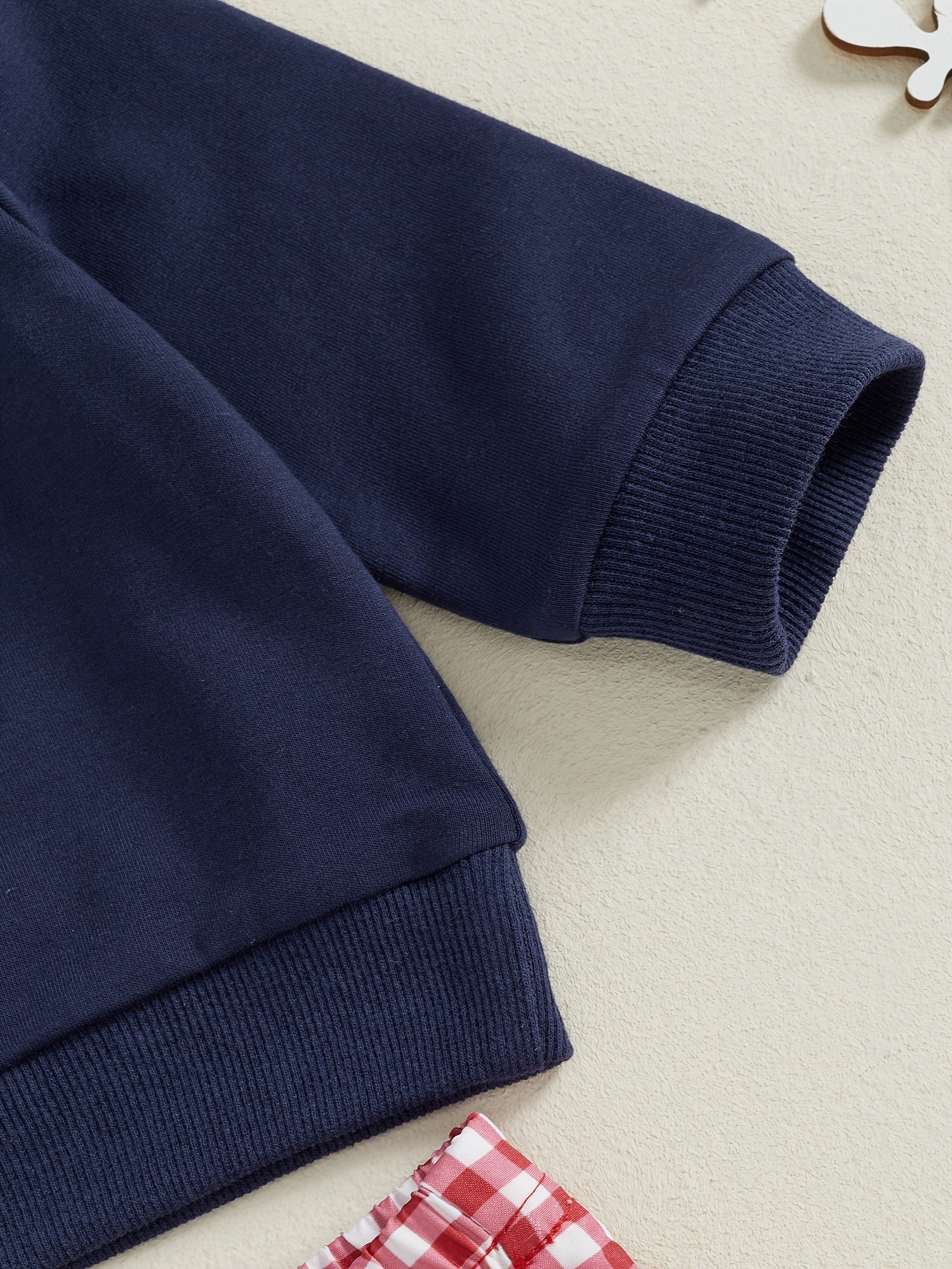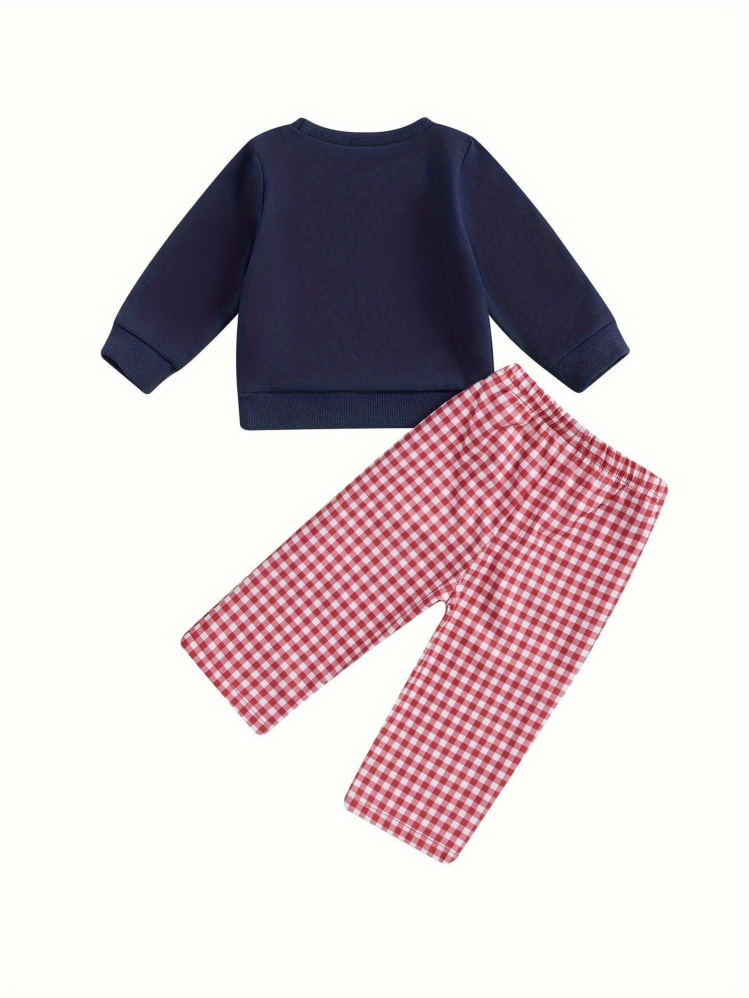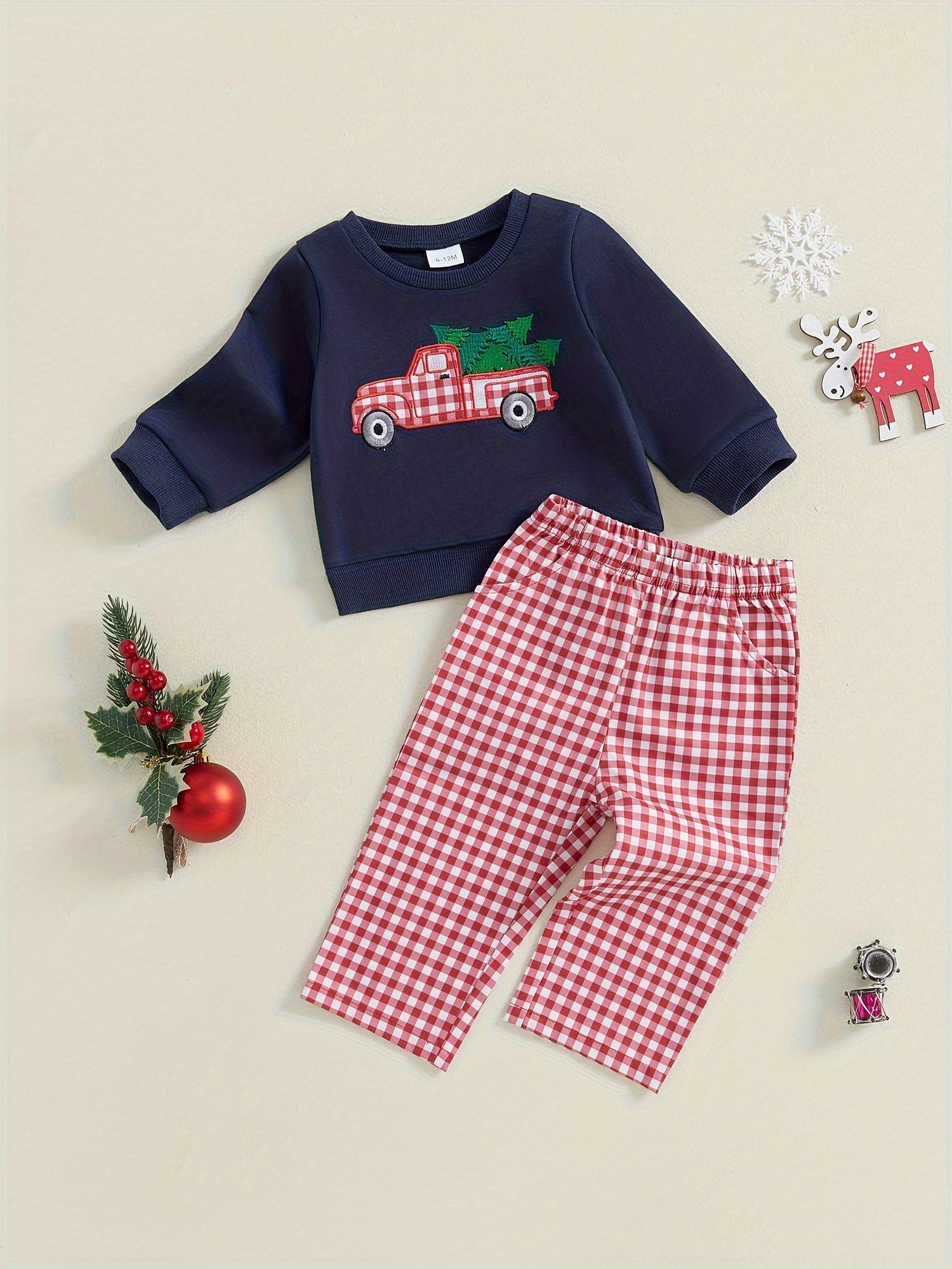 Toddler Boys Christmas Outfits Santa/Truck Embroidery Long Sleeve Sweatshirts and Plaid Long Pants 2Pcs Clothes Set