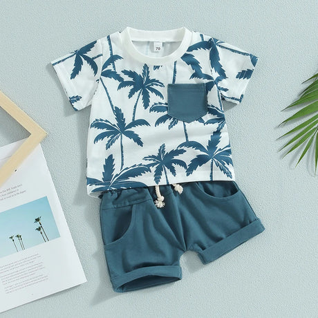 Toddler Boys 2pcs Shorts Sets Short Sleeve Letter Print Tops and Drawstring Shorts Sets, for Outdoor