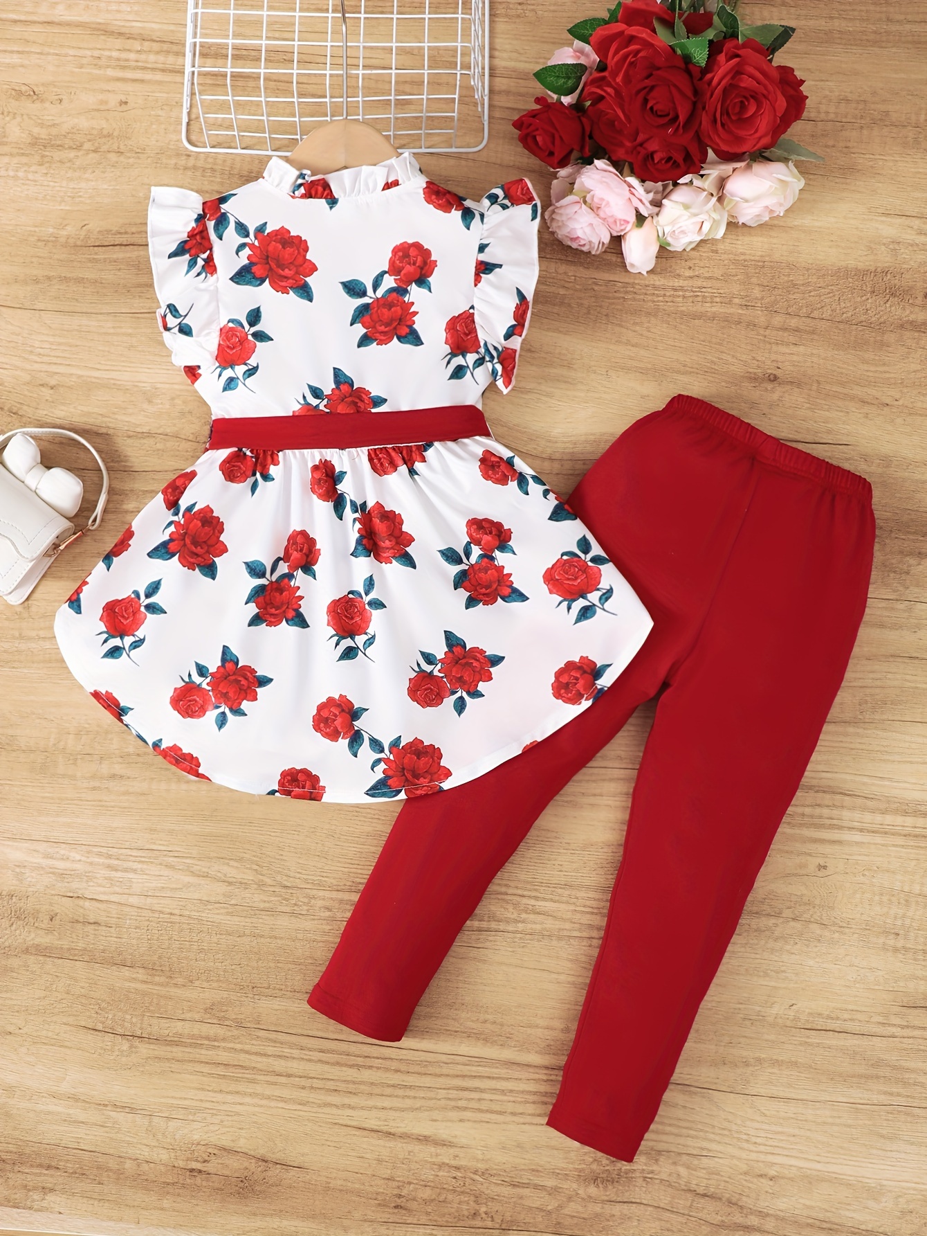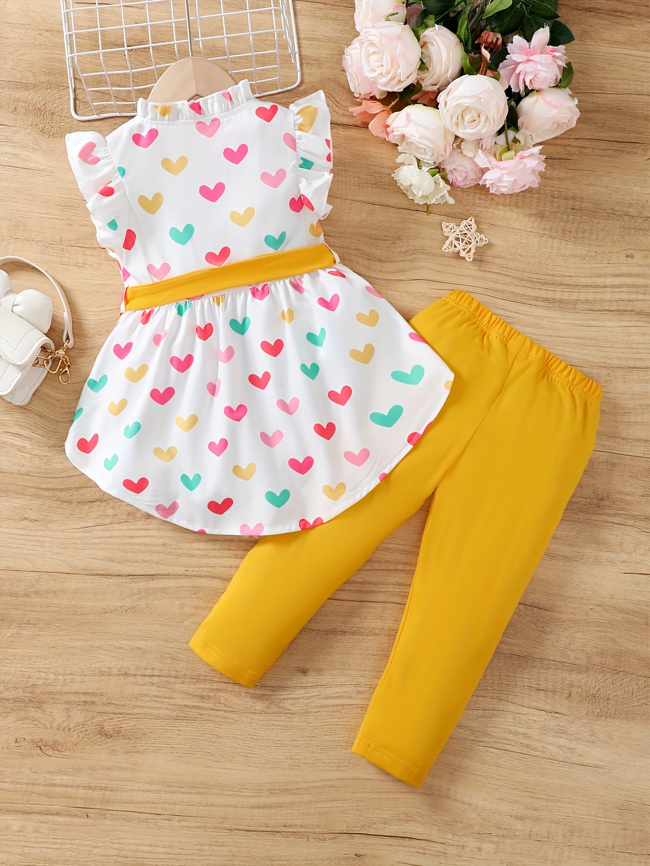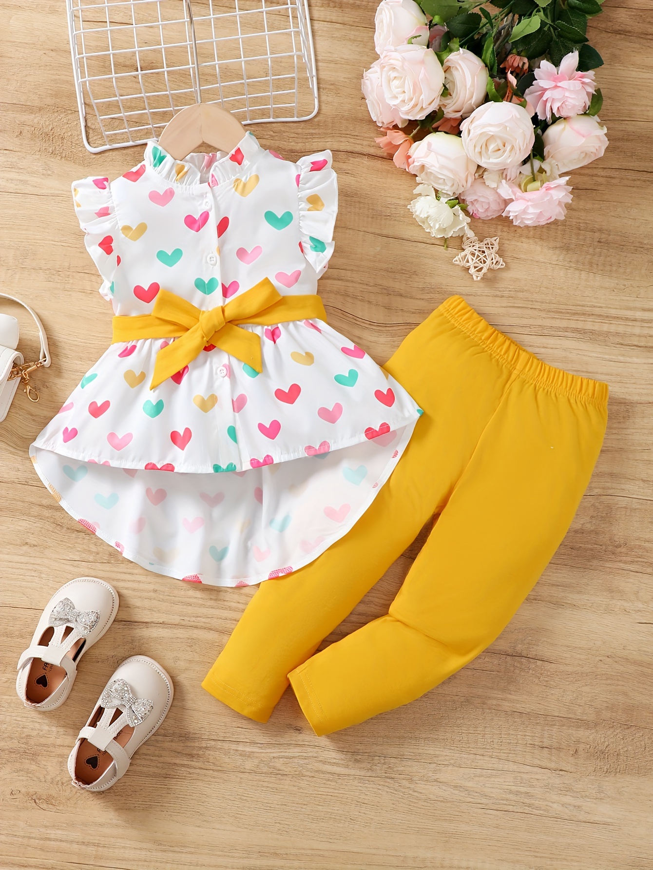 Little Girls Polka Dot 2pcs Ruffle Sleeveless Peplum Blouse Top & Legging Pants Set