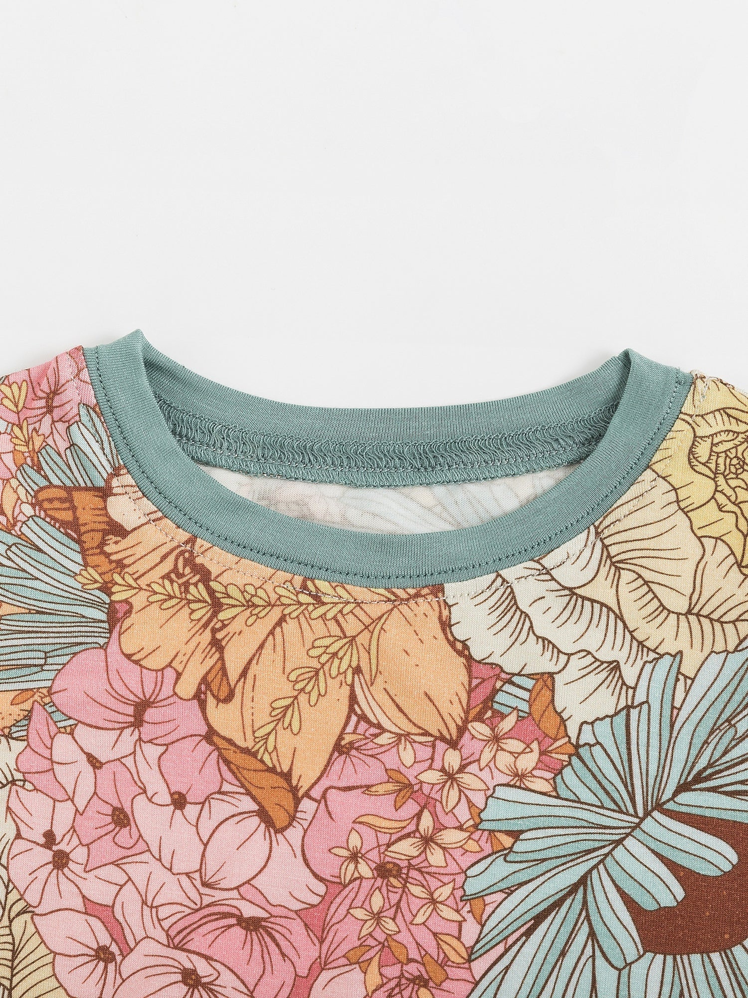 MIOZING Little Girls Bean Green Flower Print Comfy High-end Bamboo Fiber Cute & Elastic Top + Pants 2pcs