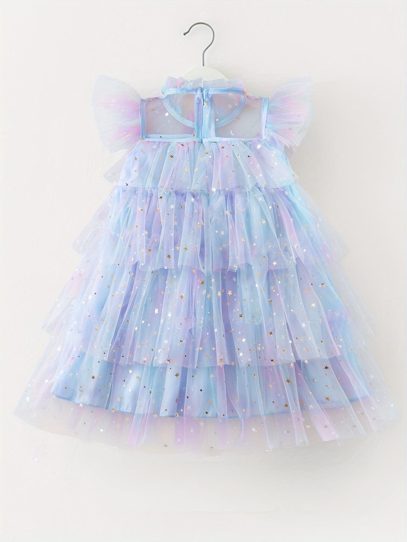 Stunning Ombre Ruffle Princess Tutu Dress - Soft Cotton Blend, Non-Stretch, Preppy Style, Flutter Sleeve, Regular Fit, Perfect for Summer Holiday Party, Gift for Little Girls