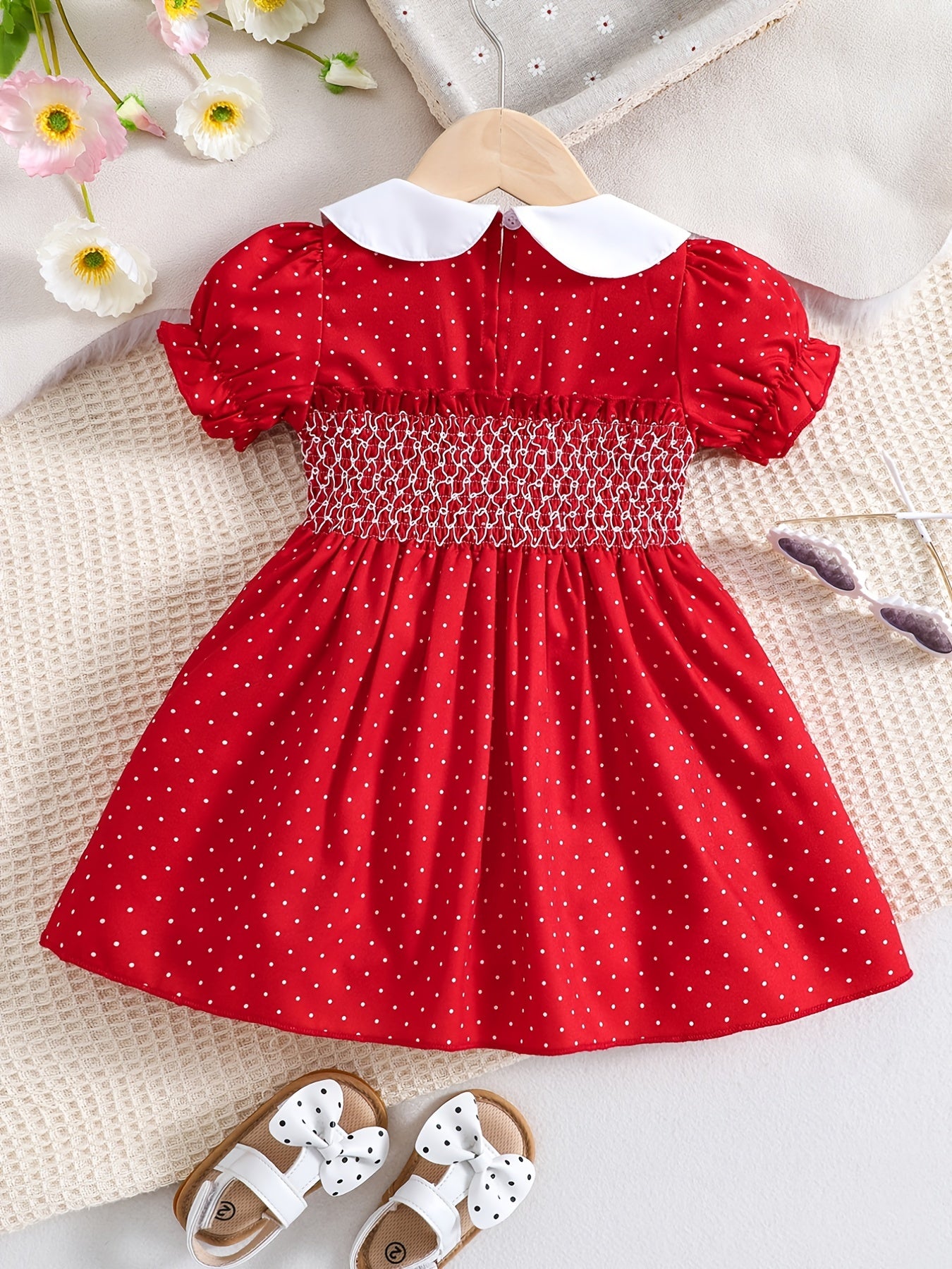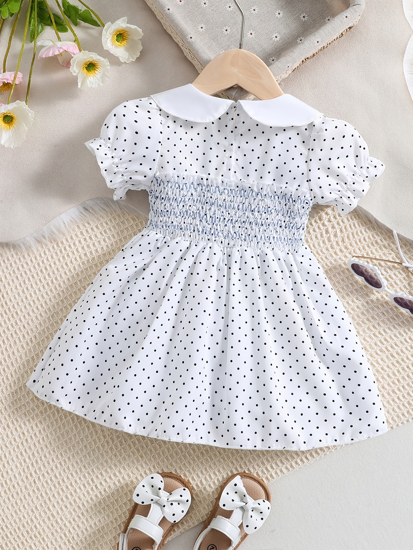 Stylish & Cute Polka Dot Shirred Puff Sleeve Dress, Perfect For Little Girls Banquet Birthday Party Dress Up