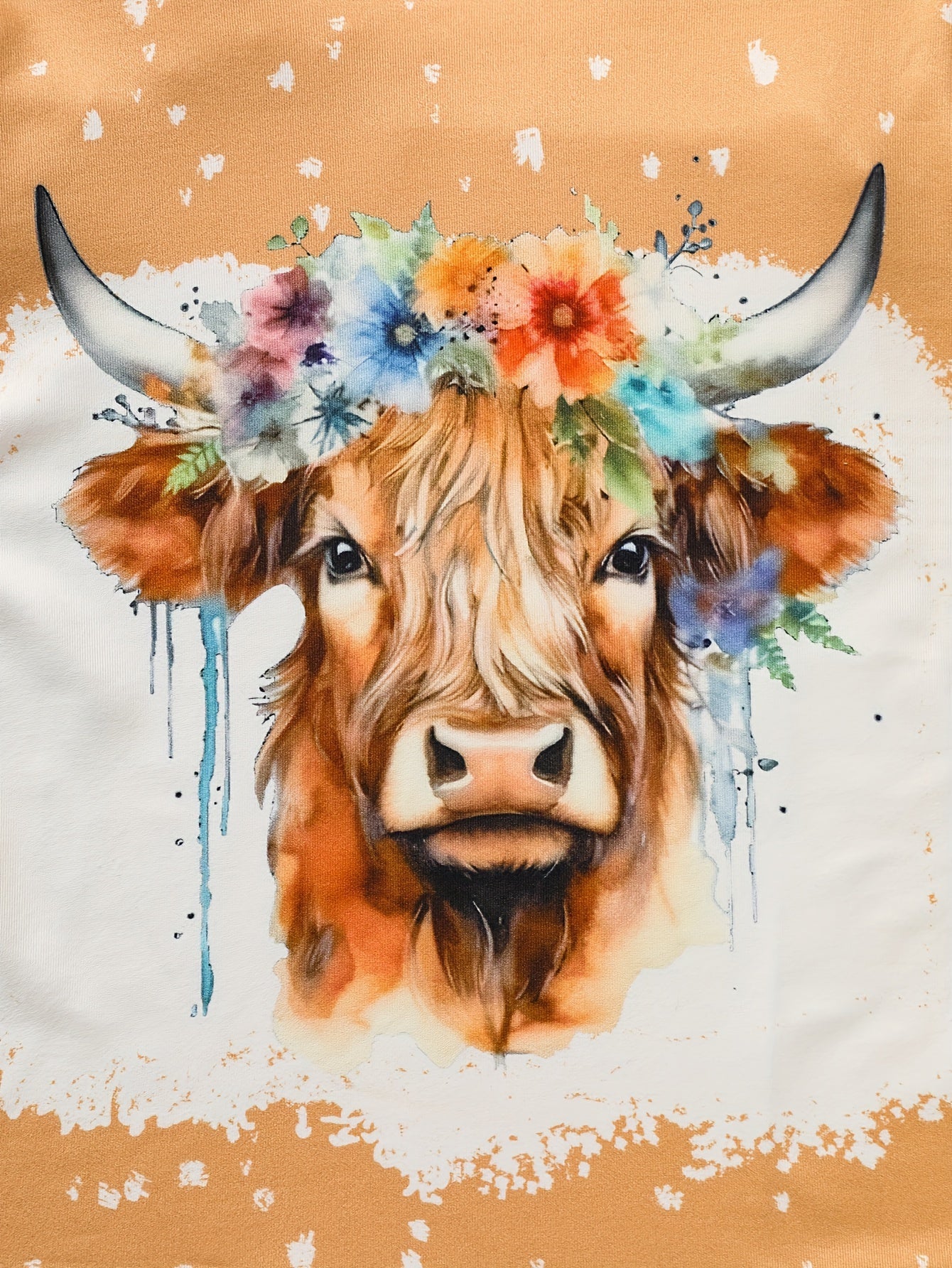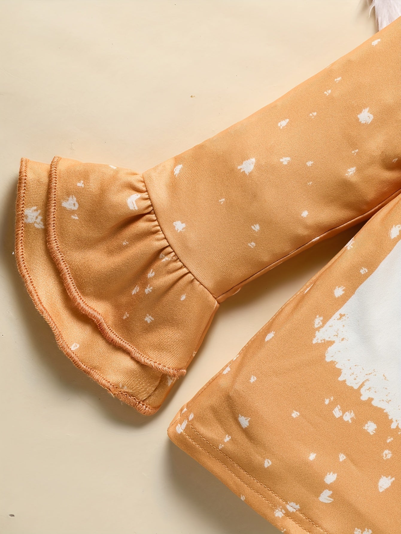 Zehjuhan Toddler Baby Girls Clothes Long Sleeve Round Collar Bull Head T Shirt Tops Print Flared Pants Casual Little Girls Outfit Set - Apricot / 4Y is backordered and will ship as soon as it is back in stock.