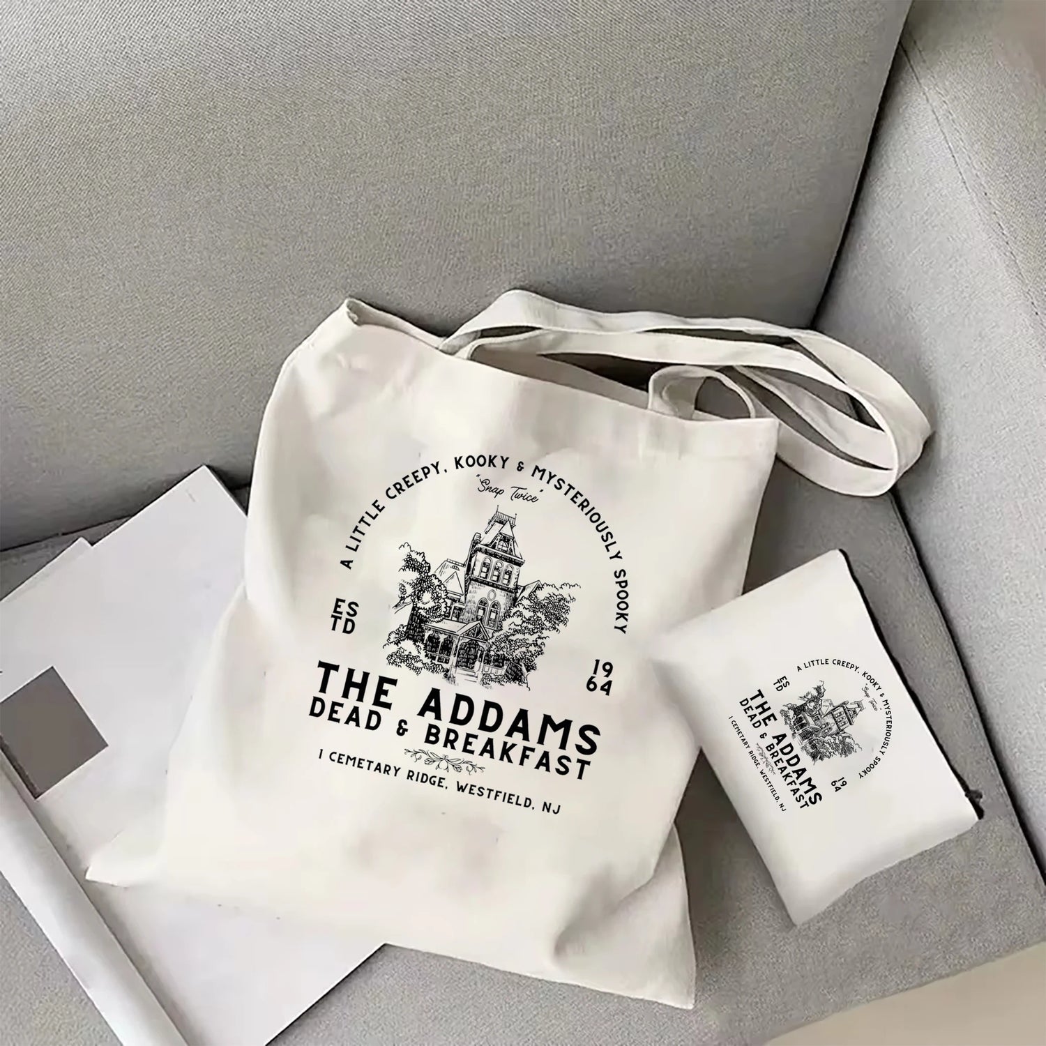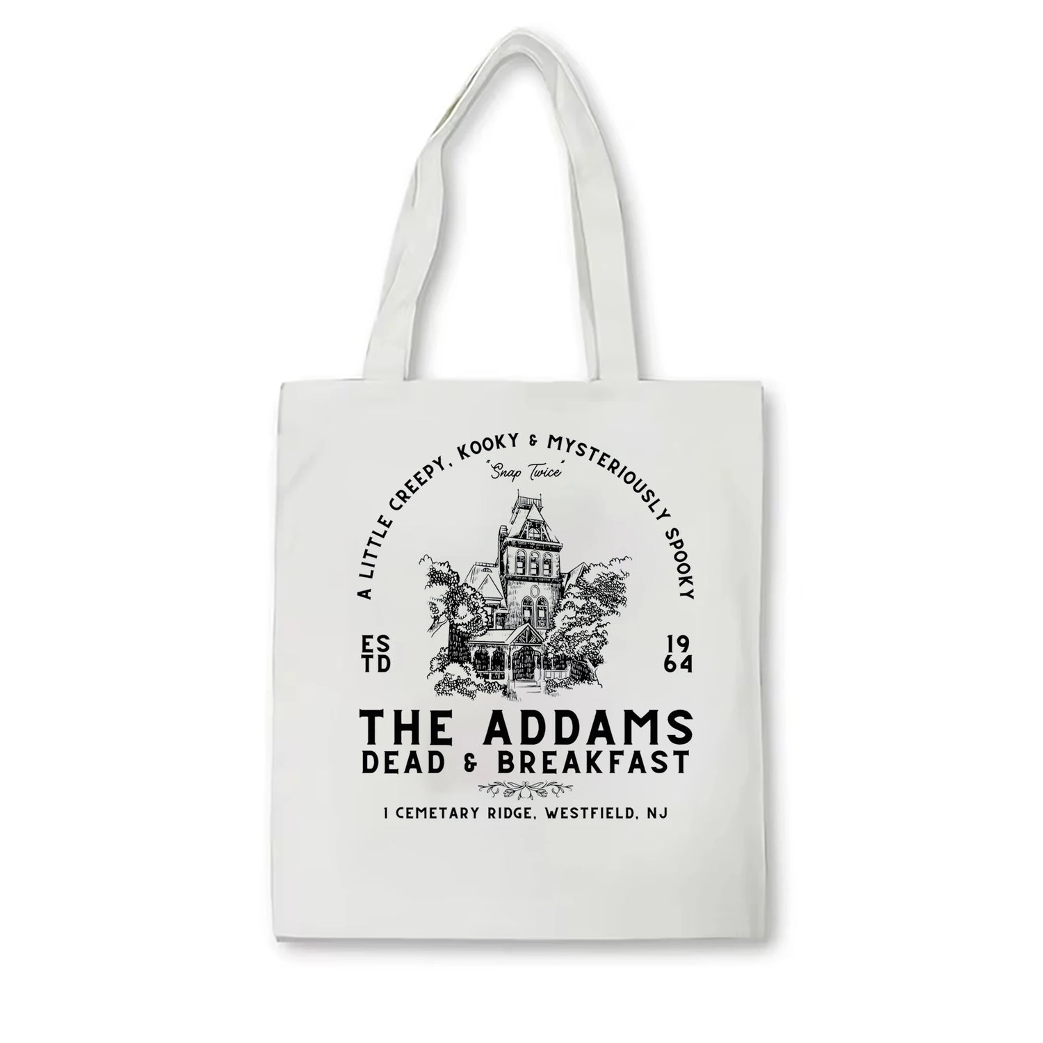 Addams Family Halloween horror tote bag Gothic women's Halloween party tote bag Addams Family tote bag Morticia Addams tote bag - No pattern / WHITE is backordered and will ship as soon as it is back in stock.