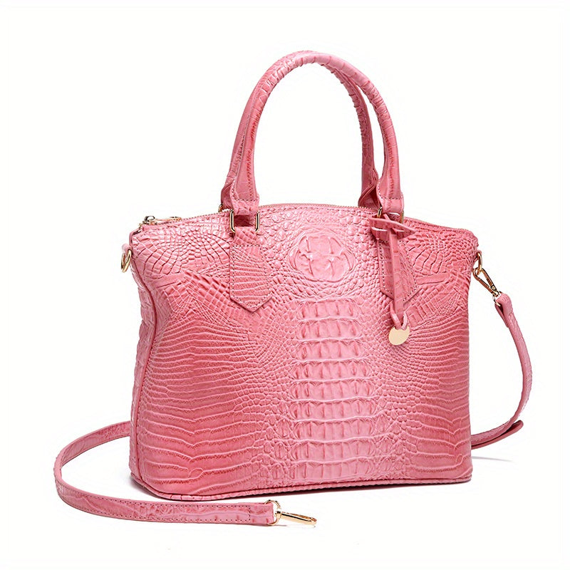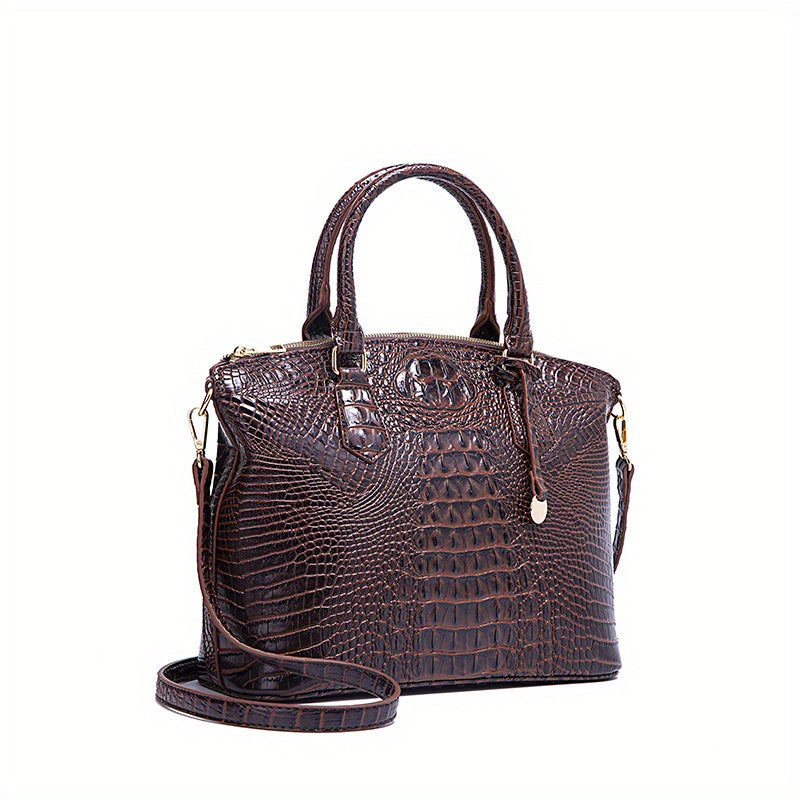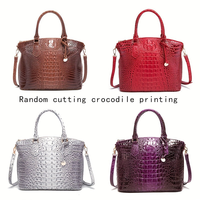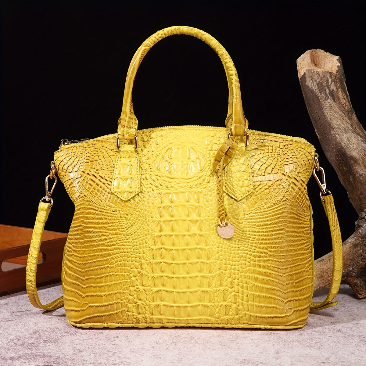 Fashion-Forward Crocodile Pattern Tote Bag - Double Handle Work Purse with Secure Zipper Closure - Perfect for Stylish, Professional Women - A Trendy Daily Accessory
