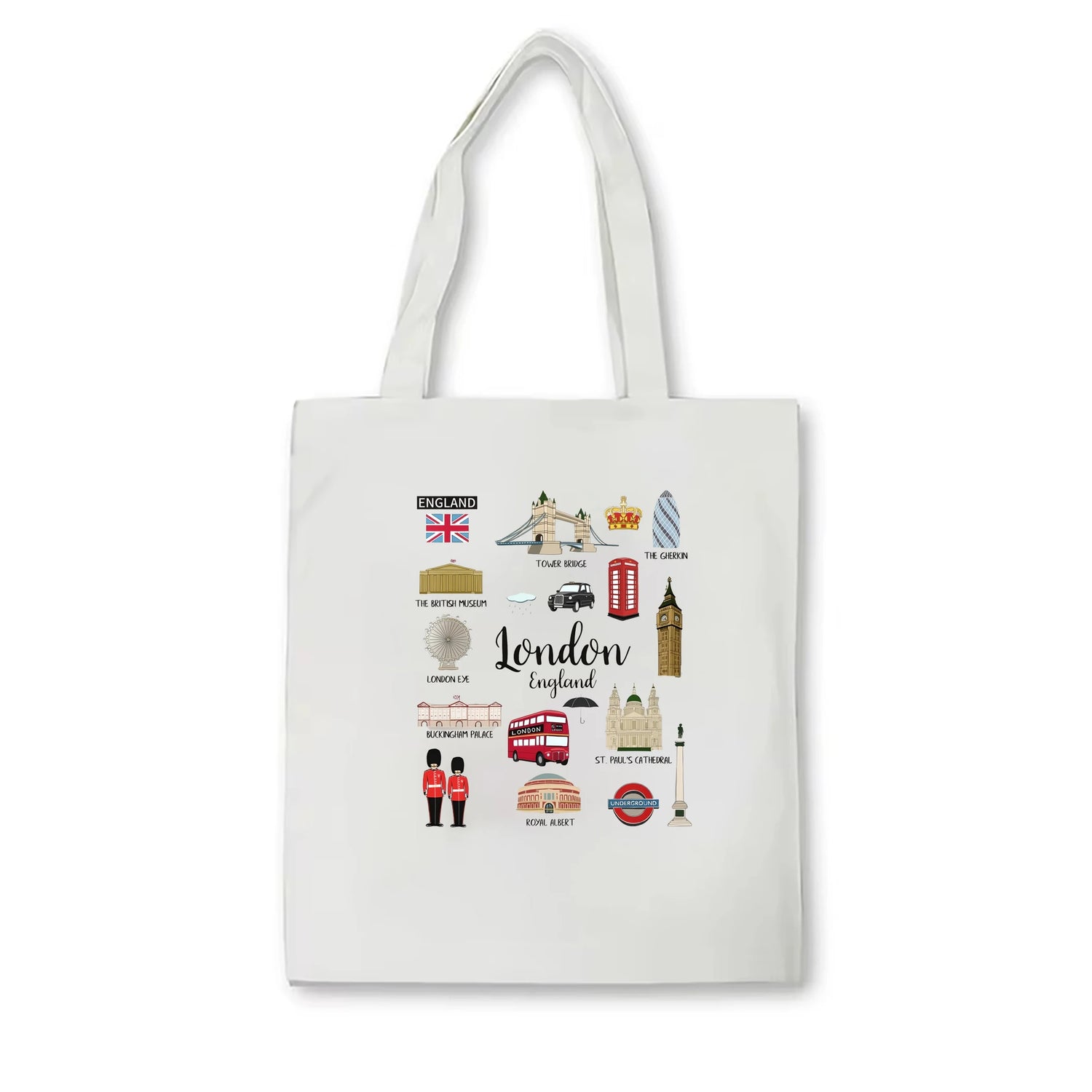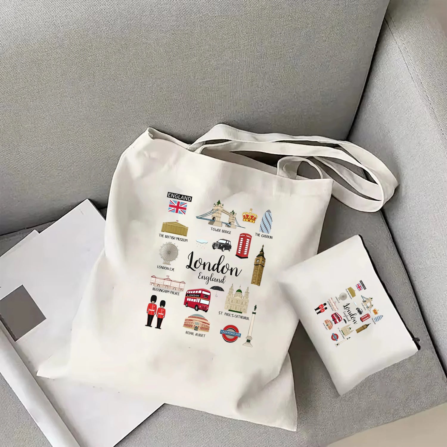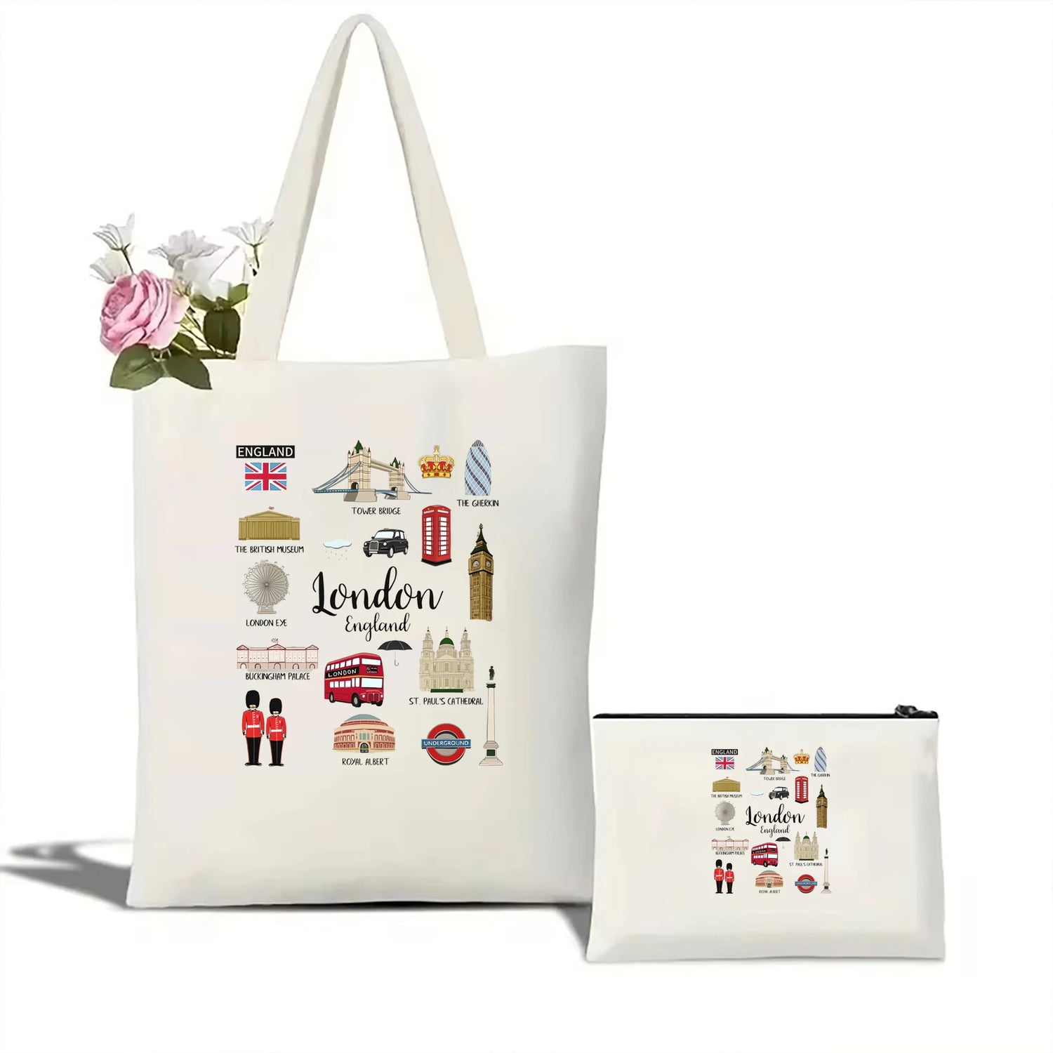 London Tote Bag London Travel Tote Bag Women's Casual Canvas tote bag London Zippered Cosmetic Bag London Landmarks Tote Bag