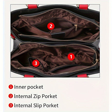 Classic Letter Embossed Tote Bag, Colorblock Shoulder Bag, All-Match Satchel Bag For Work