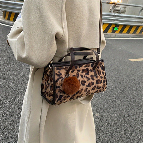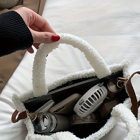 Plush Cow Pattern Tote Bag, Y2K Vintage Shoulder Bag, Fluffy Faux Fur Handbag For Women
