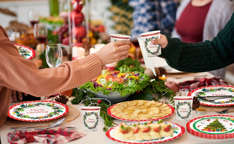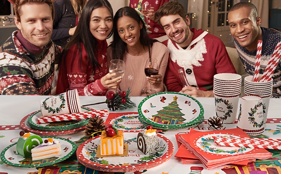 122pcs Disposable Christmas Theme Tableware, Christmas Party Decoration With Paper Plates, Napkins, Paper Cups, Straws, Tablecloths And Flags, Xmas Holiday Theme Tableware Supplies& Decoration (Mistletoe Pattern, For 24 Peopl - 122pcs-1 Set is backordered and will ship as soon as it is back in stock.