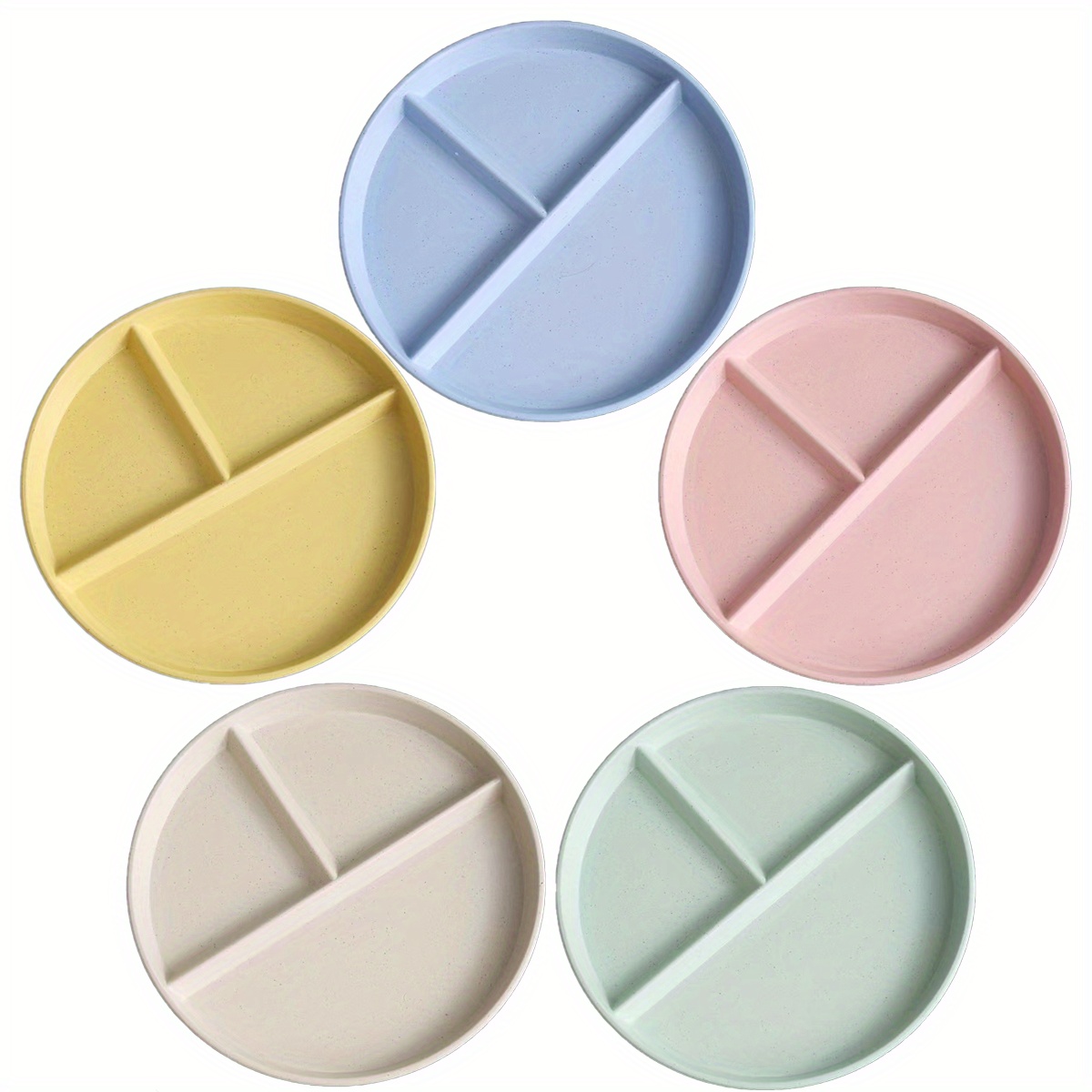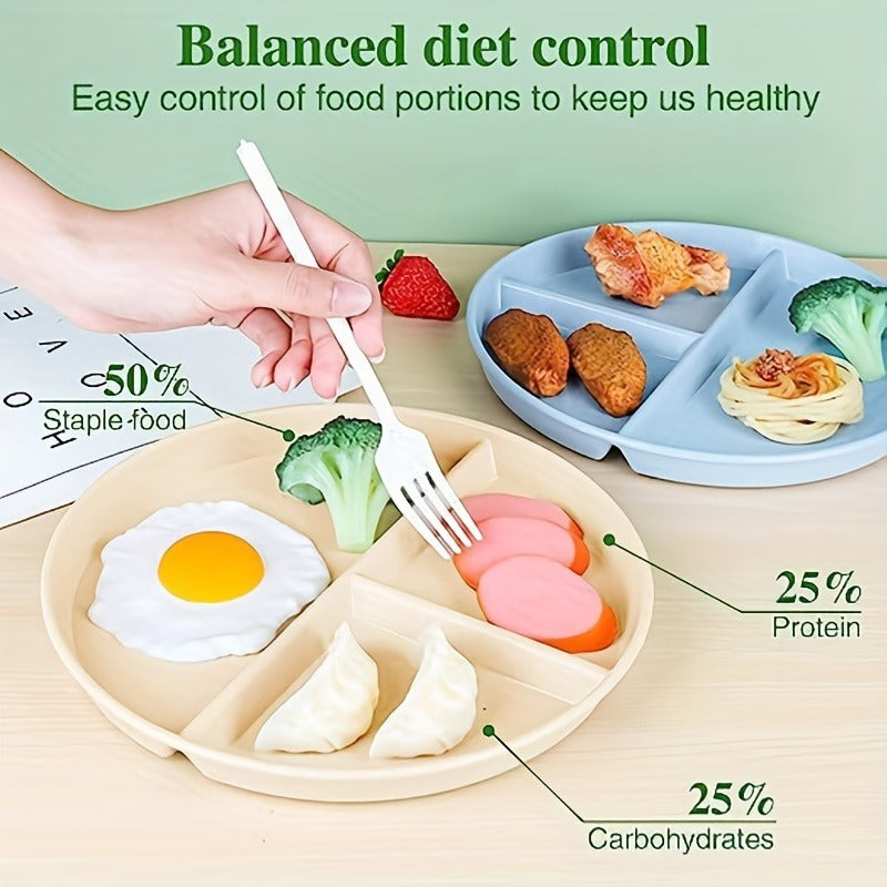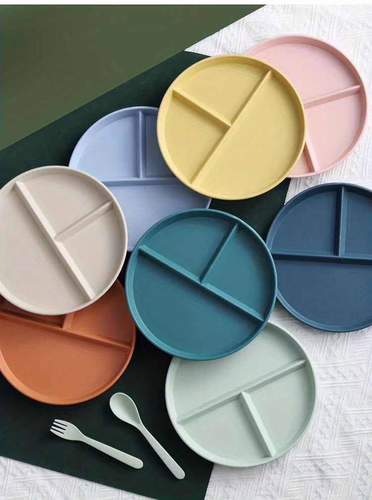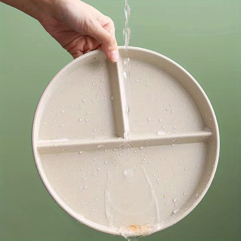 4pcs Unbreakable 9-Inch Wheat Plastic Round Gridded Dinner Plates - Durable, Dishwasher-Cleanable, Reusable, BPA-Free, Picnic and Salad Plates for Eid Al-Adha Mubarak Celebration - Perfect for Outdoor and Indoor Use