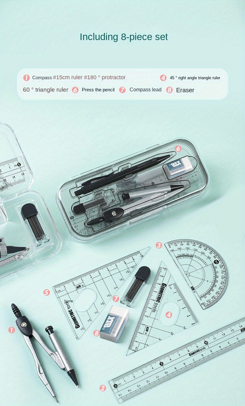 Compass And Ruler Set Drawing Tools, Drawing Rulers, Geometric Drawings, Triangle Plates, Stationery Sets, Rulers