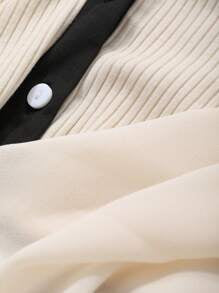 DAZY Women's Ribbed Fabric Patchwork Round Neck Loose Pullover Shirt With Butterfly Decor