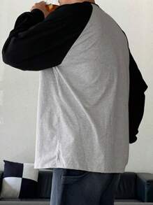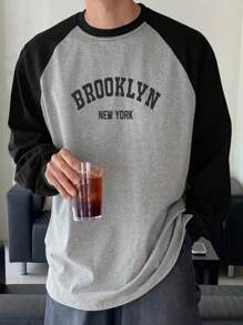 DAZY Men's Splicing Colorblock Letter Print T-Shirt, Casual & Fashion For Daily Wear, Spring