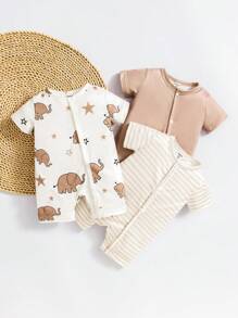 EASYOWN Baby Boy Elephant Print 3D Patched Design Tee Romper