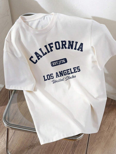 Tween Boy Casual Letter Graphic Round Neck Short Sleeve T-Shirt, Cotton Blend, Summer