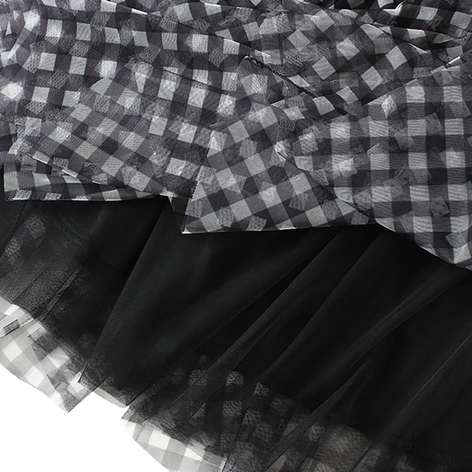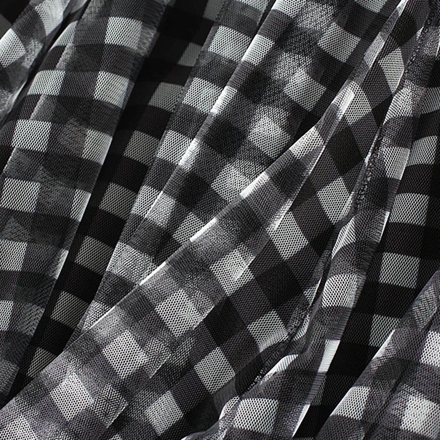Checkered mesh skirt: the perfect combination of elegant mesh. The skirt has an irregular double hem. This elegant skirt is made of breathable material with plaid pattern that makes it look like a fairy. This could be the stunning party event dress you are looking for, feel confident wearing this beautiful, glamorous and flowing dress.