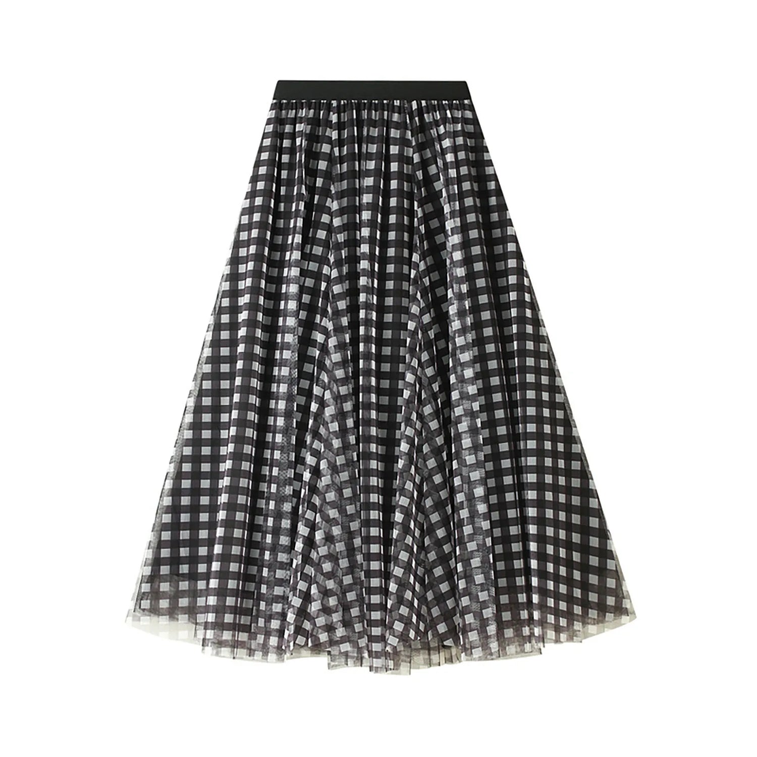 Skirts For Women Women's Plaid Print A Line Elastic Waist Multi Layered Tulle Mesh Skirts For Women Large Swing Dark Bottoms