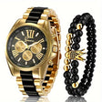 2pcs/set - Premium Mens Dual-Purpose Watch Set - Fashion Sports & Business Quartz Watches with Stainless Steel Bracelets - Durable & Stylish - 2PC Gold is backordered and will ship as soon as it is back in stock.