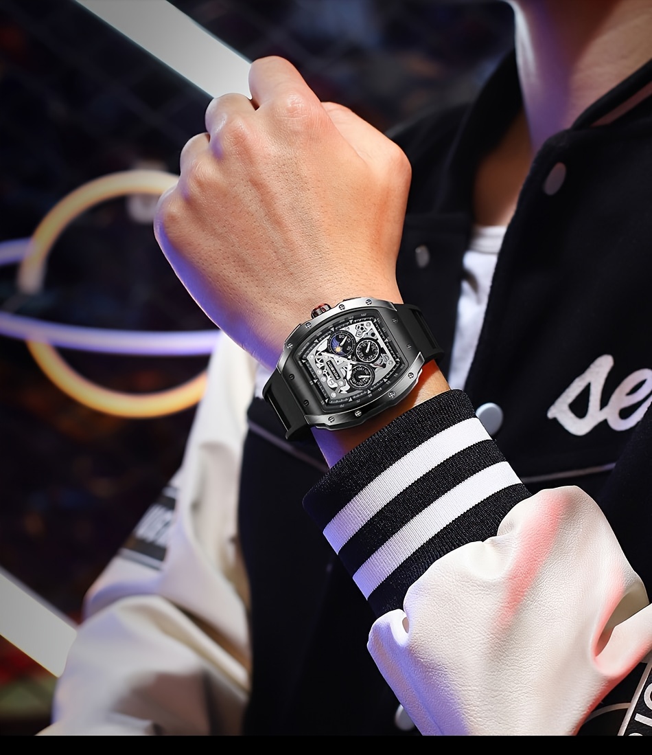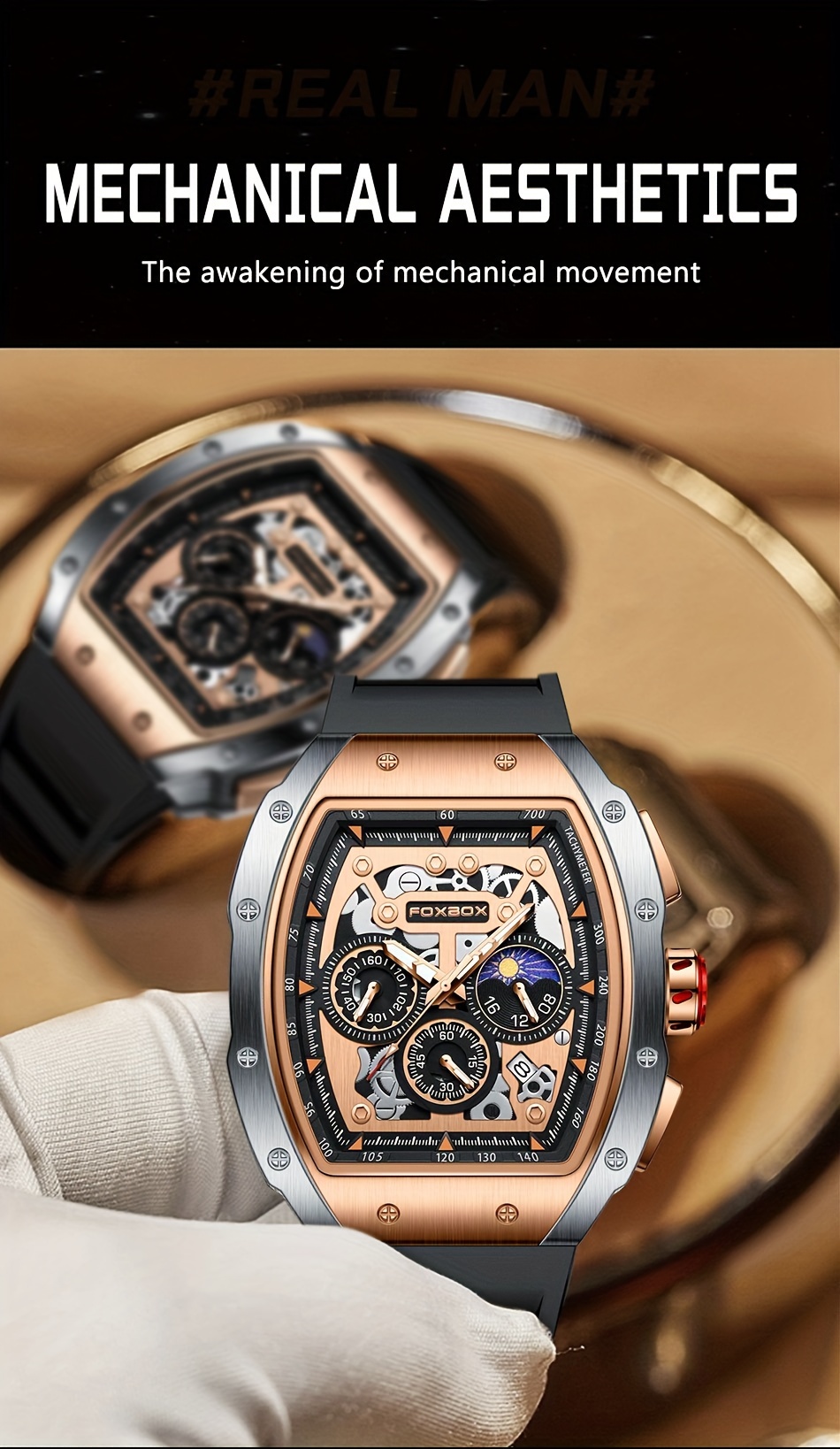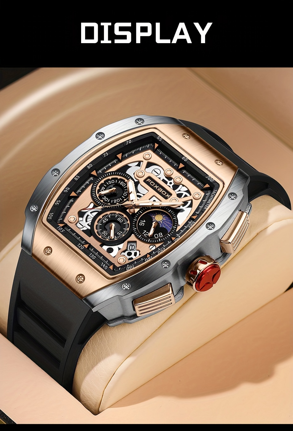 Foxbox Men's Waterproof Quartz Wristwatch, Date Sport Silicone Wrist Watches