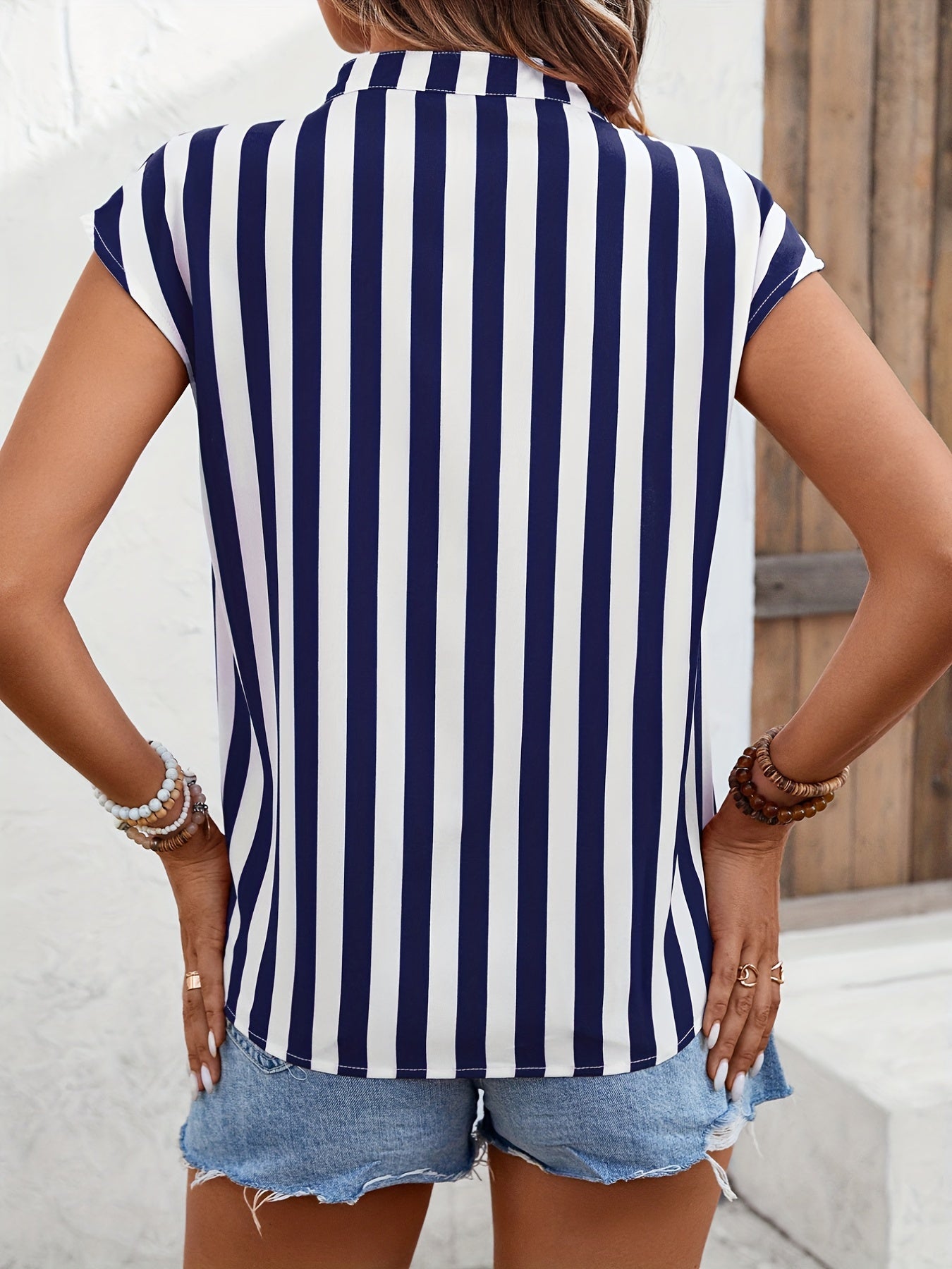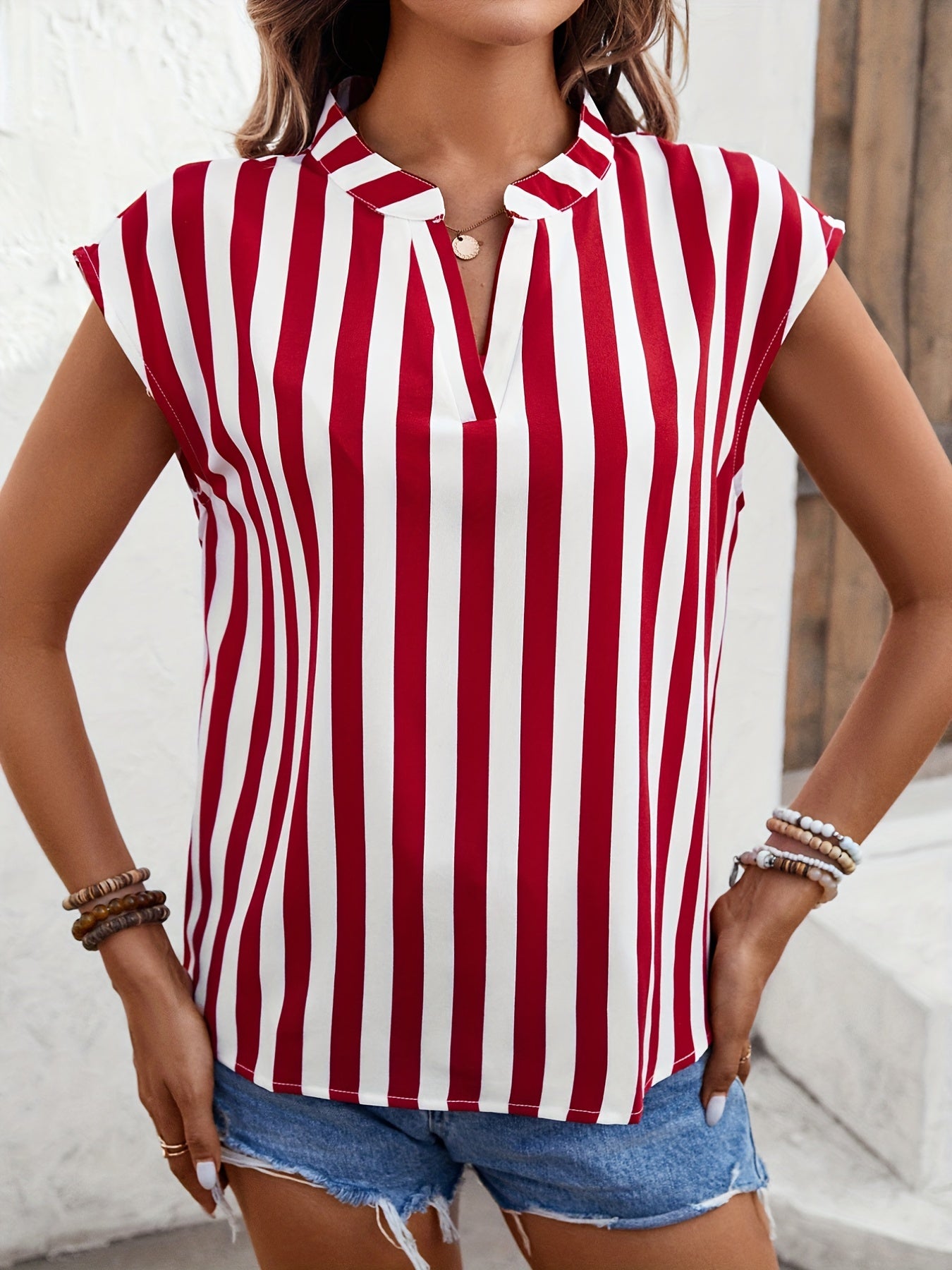 Striped Print Blouse, Casual V Neck Cap Sleeve Work Office Blouse, Women's Clothing