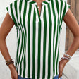 Striped Print Blouse, Casual V Neck Cap Sleeve Work Office Blouse, Women's Clothing - Green / S is backordered and will ship as soon as it is back in stock.
