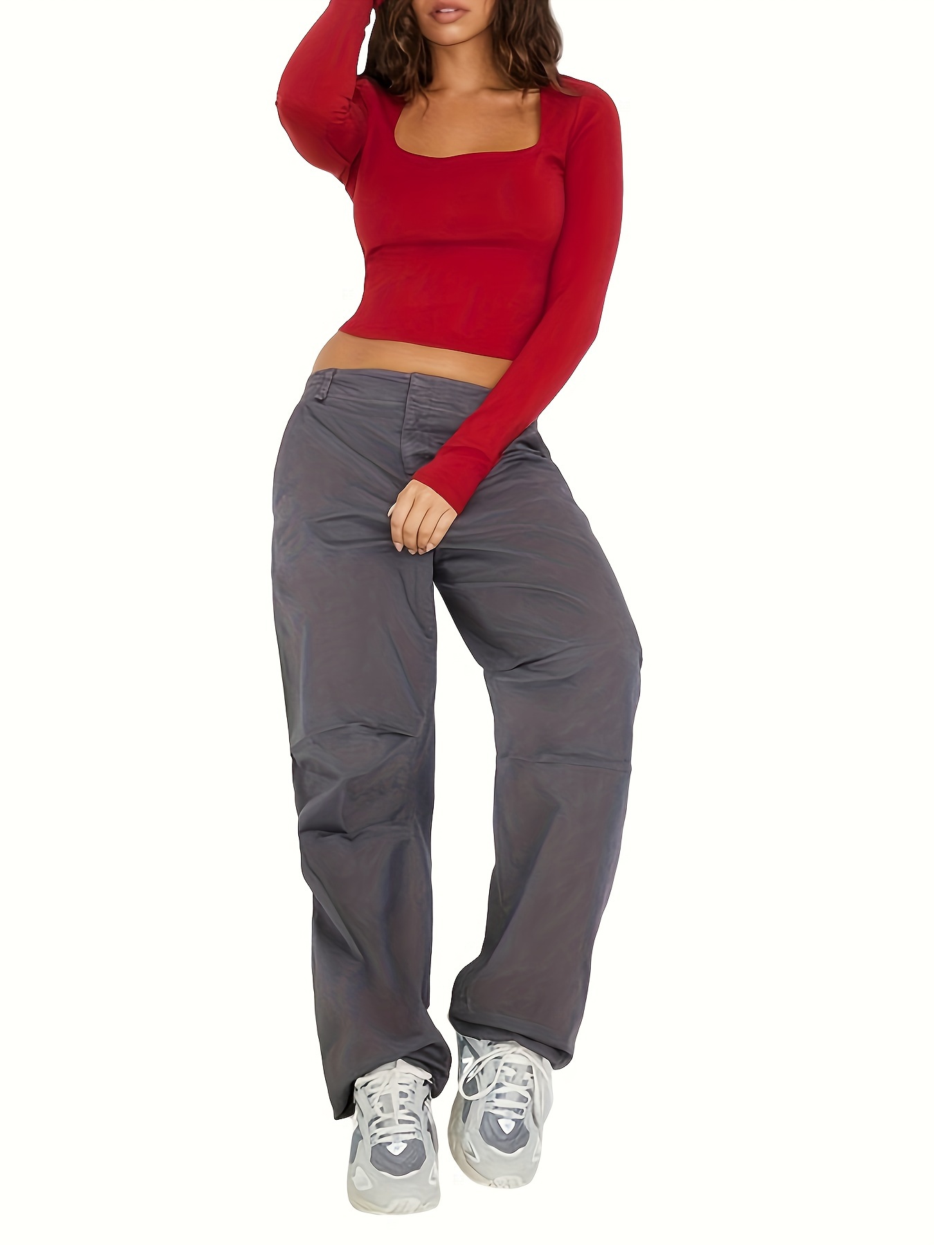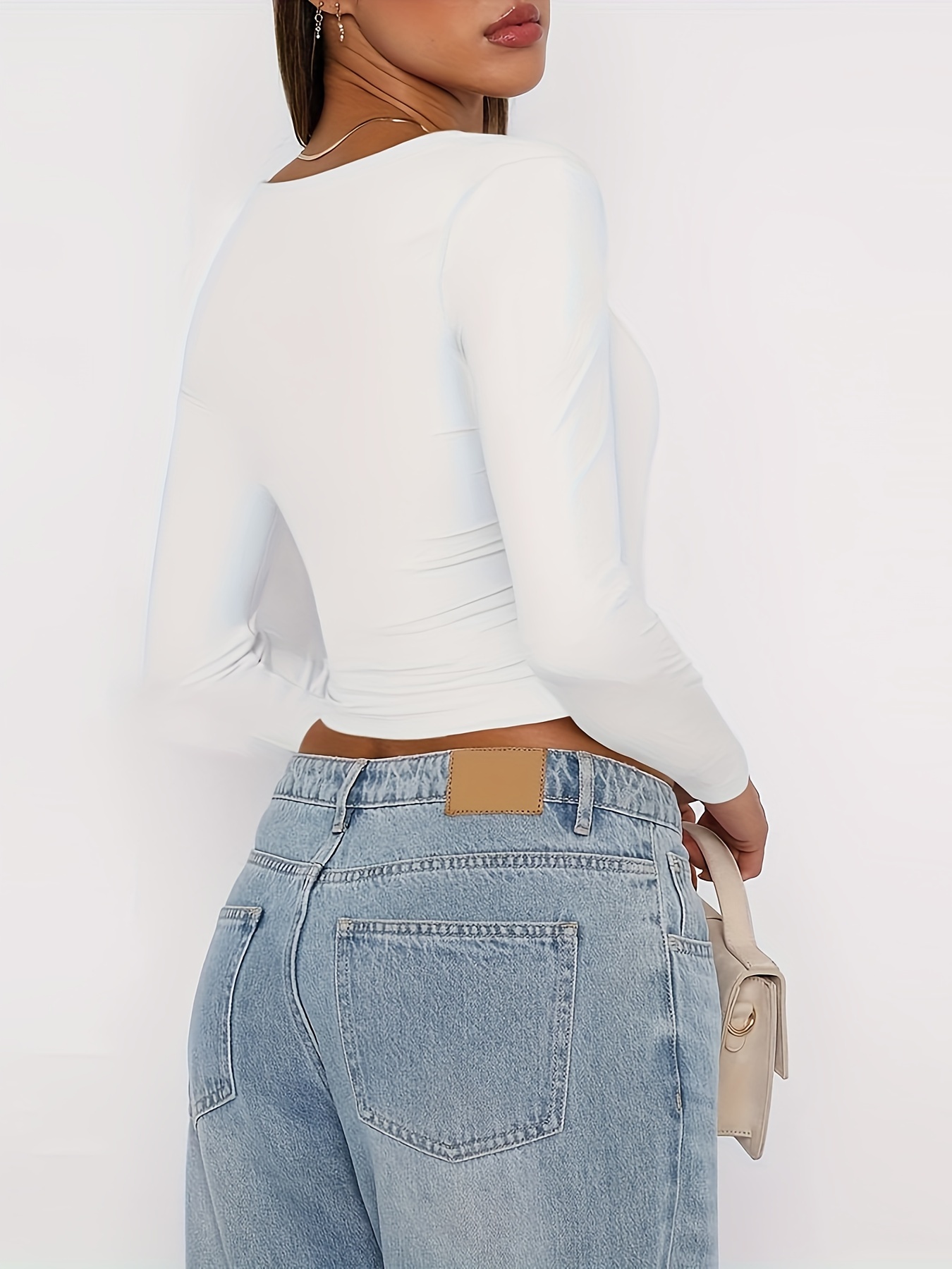 Women's Slim Fit Crop Tops Long Sleeve Square Neck Solid Color T-Shirt Dressy Blouses