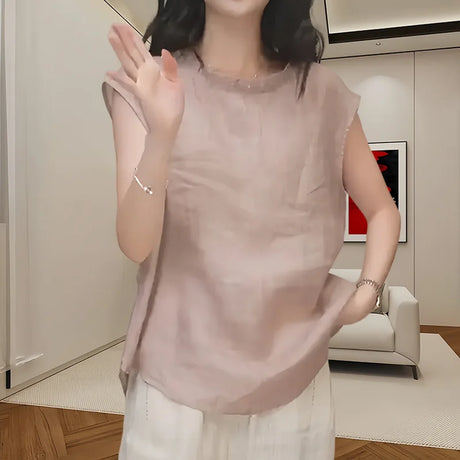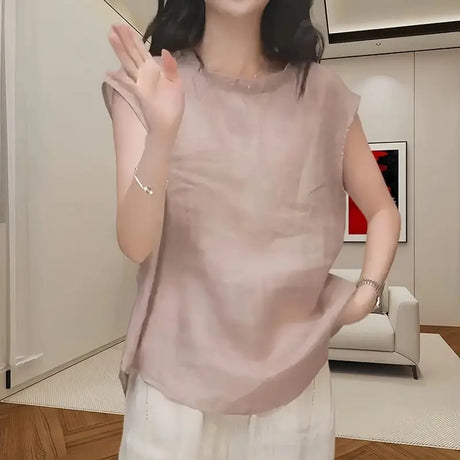 Sleeveless Blouse for Women New Summer Style Round Neck Design Fashionable Loose Thin Top