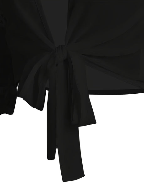 Elegant Solid Knotted Flared Sleeve Blouse, Open Front for Coquette/Cute/Y2K Style Women's Clothing