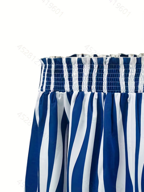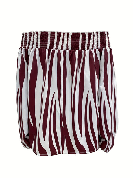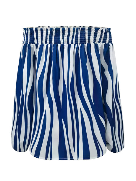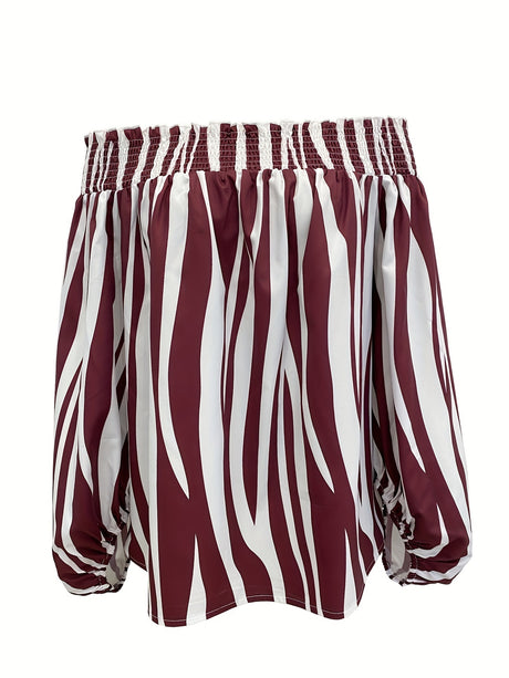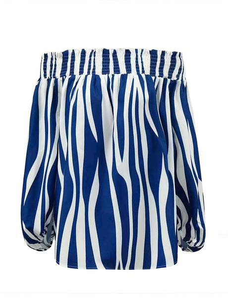Chic Off Shoulder Striped Blouse - Fashionable Lantern Sleeves - Ultra-Comfortable Womens Casual Top