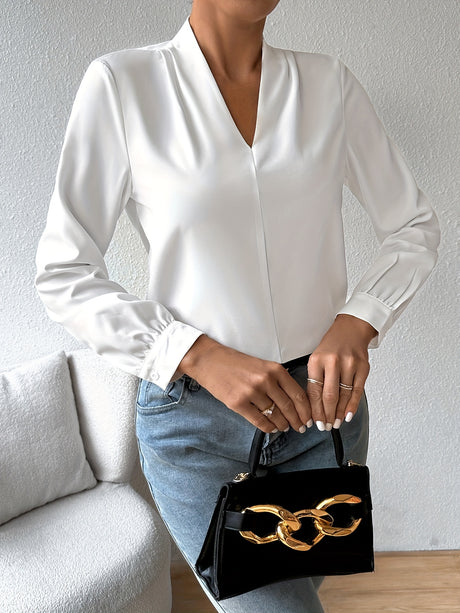 Chic Pleated Slim-Fit Blouse - Essential Long Sleeve Top for Women, Perfect for Spring & Fall