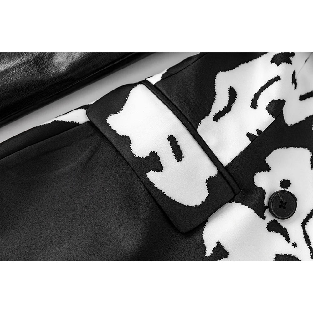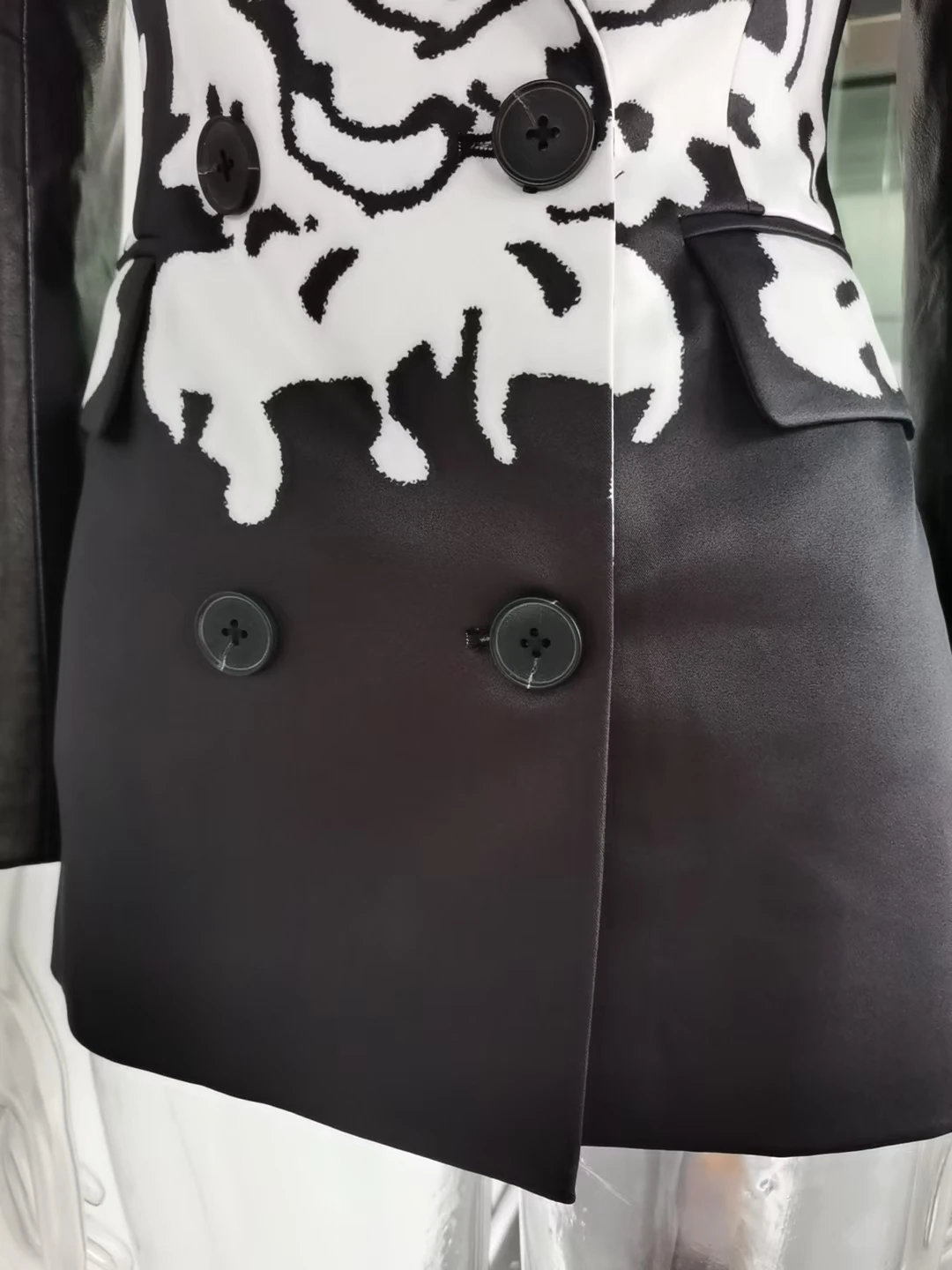 2025 New Designed Fashion Pu Patchwork Floral Office Wear Slim Blazer For Women Ladies