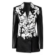 2025 New Designed Fashion Pu Patchwork Floral Office Wear Slim Blazer For Women Ladies - black / M is backordered and will ship as soon as it is back in stock.
